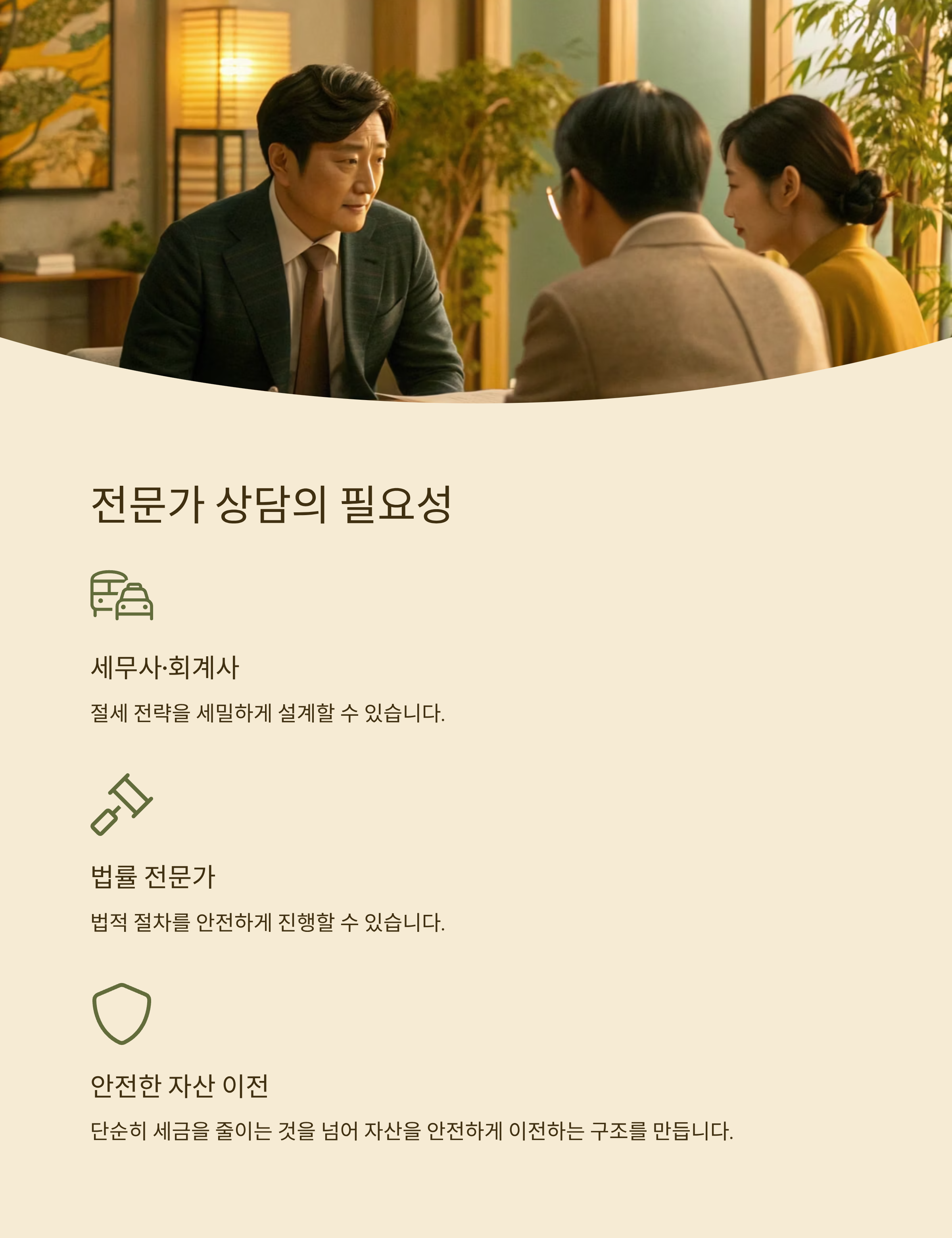 서울 부동산 증여는 금액이 크고 법적 절차가 복잡합니다. 세무사나 회계사, 법률 전문가의 도움을 받으면 절세 전략을 세밀하게 설계할 수 있습니다. 단순히 세금을 줄이는 것을 넘어, 자산을 안전하게 이전하는 구조를 만드는 것이 목표입니다.