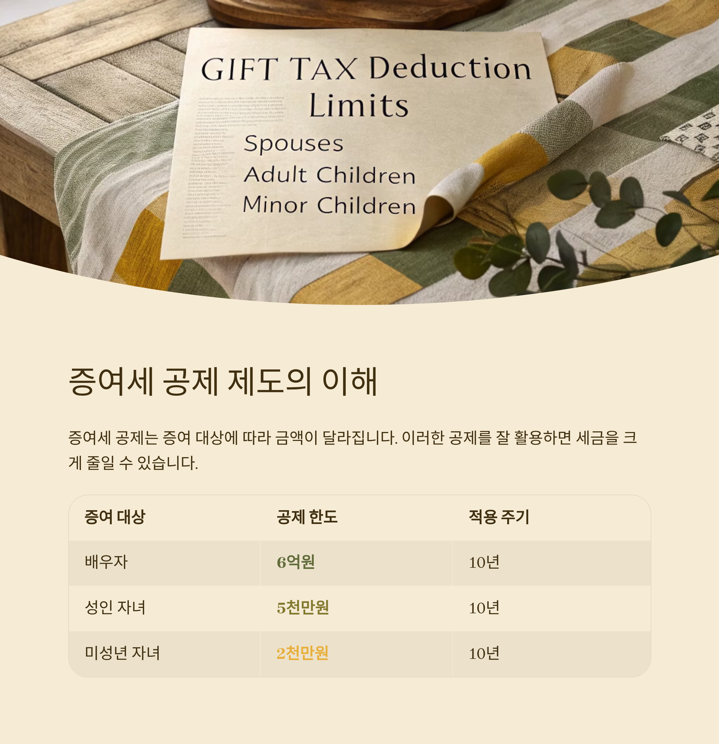| 배우자 | 6억원 | 10년 |