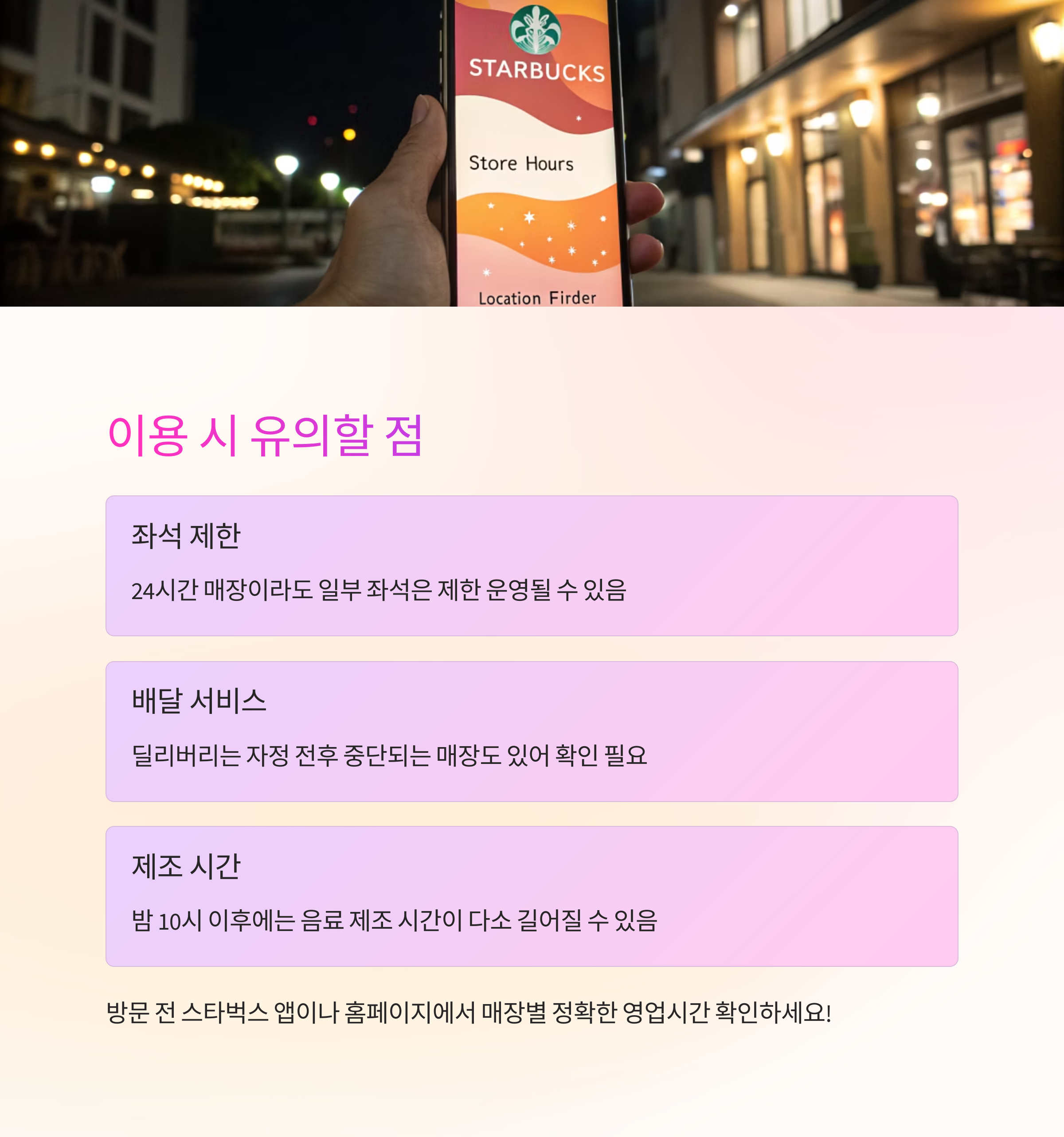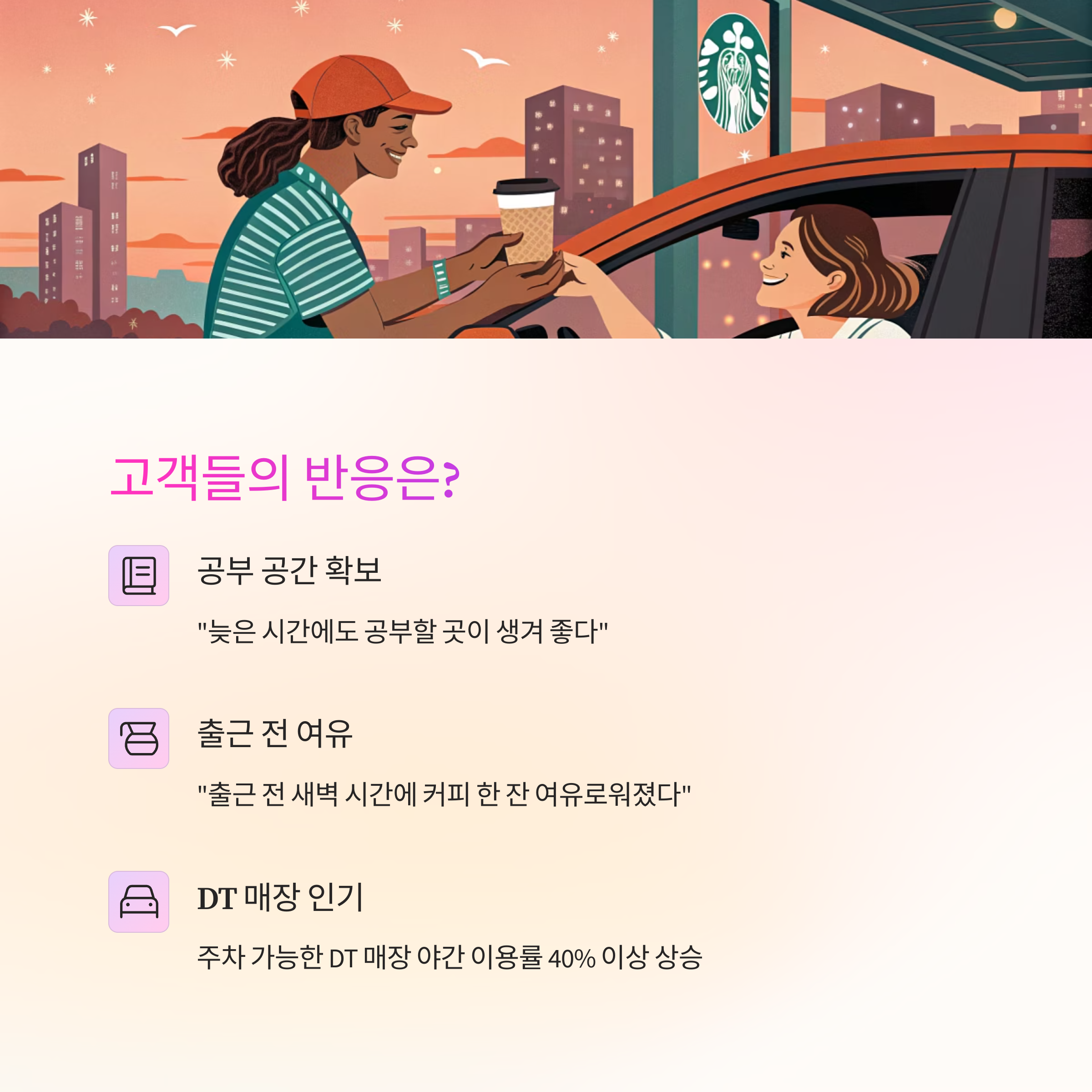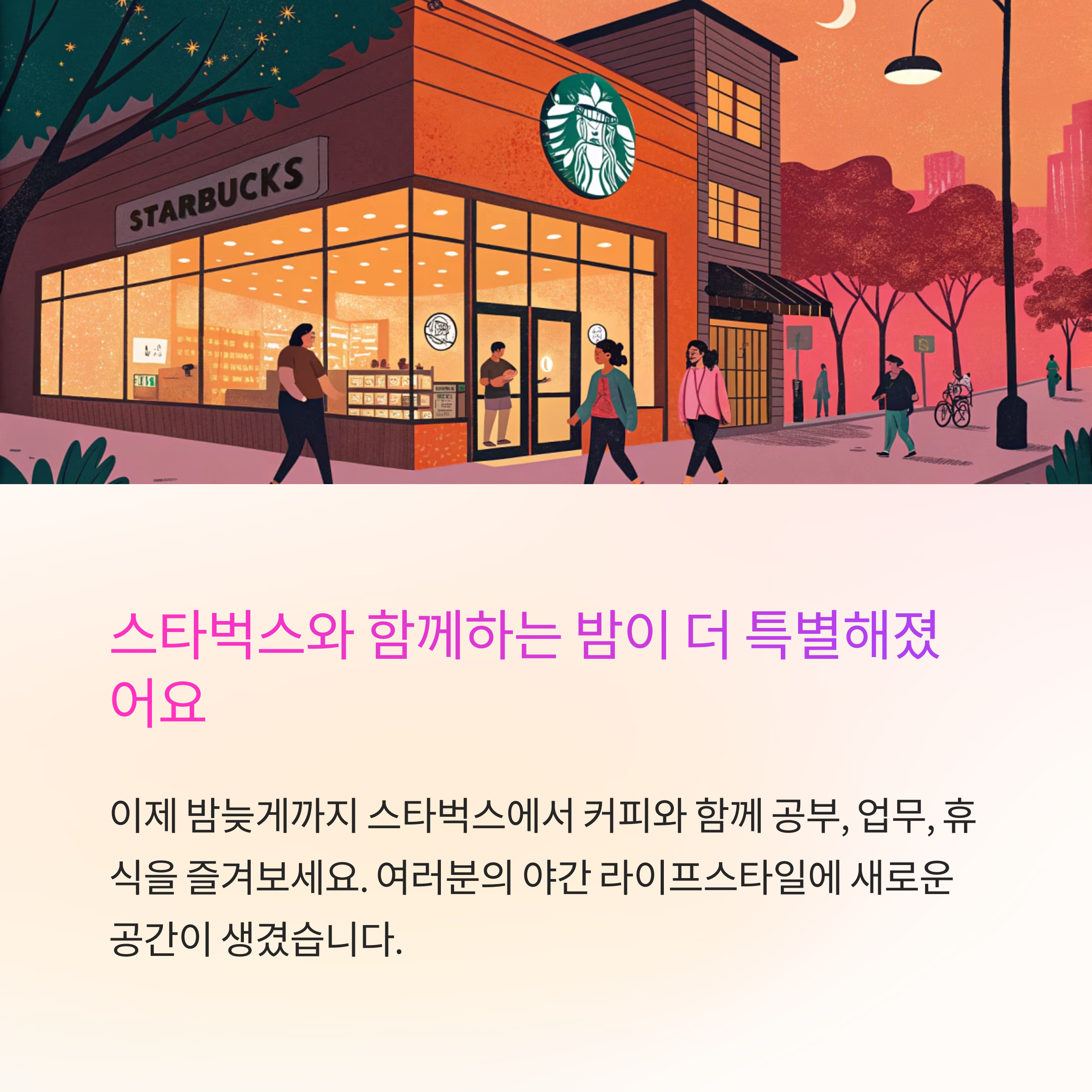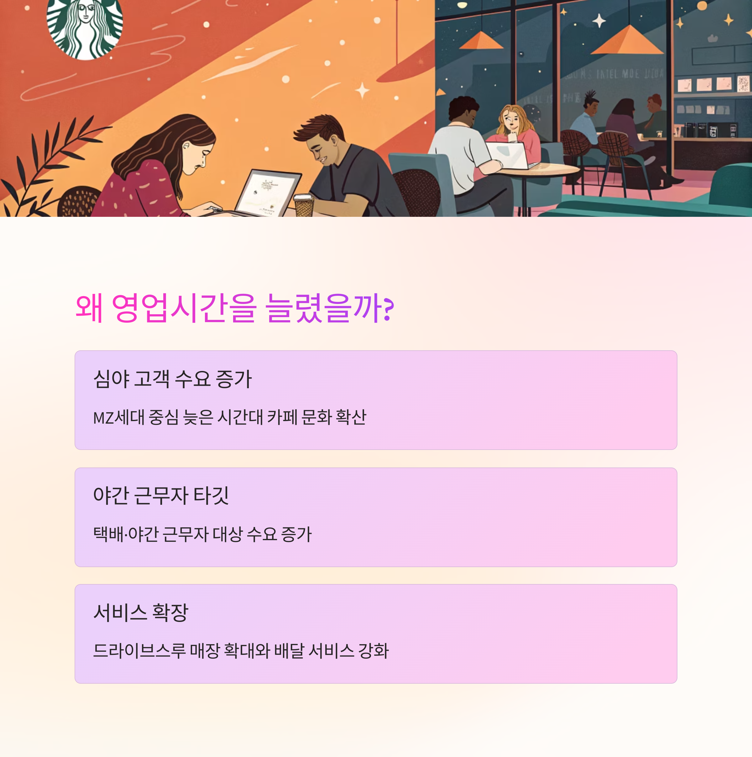 스타벅스 측은 "심야 시간대 고객 수요 증가"를 주요 배경으로 들고 있습니다.