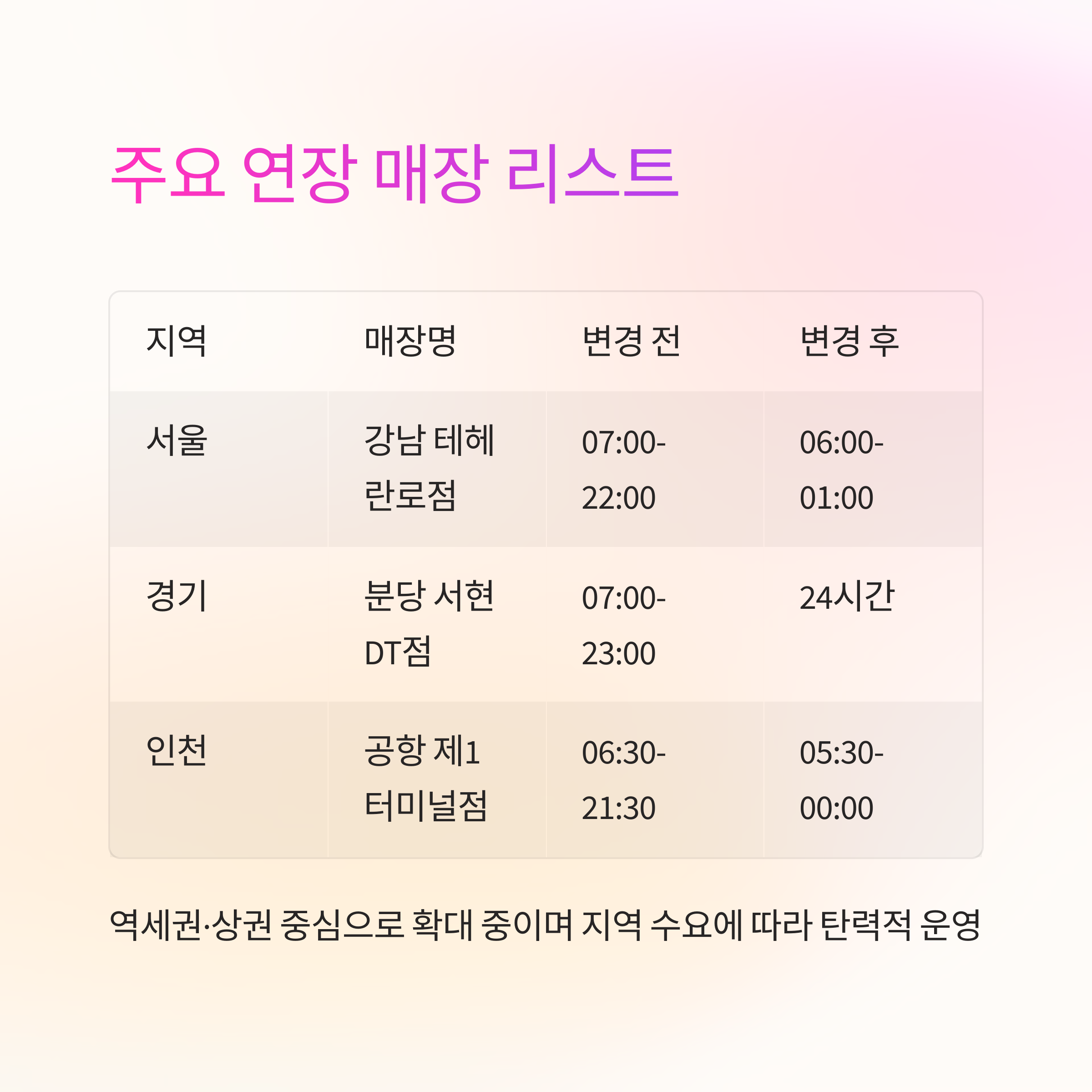특히 24시간 운영 매장을 확대하거나, 기존 폐점 시간을
