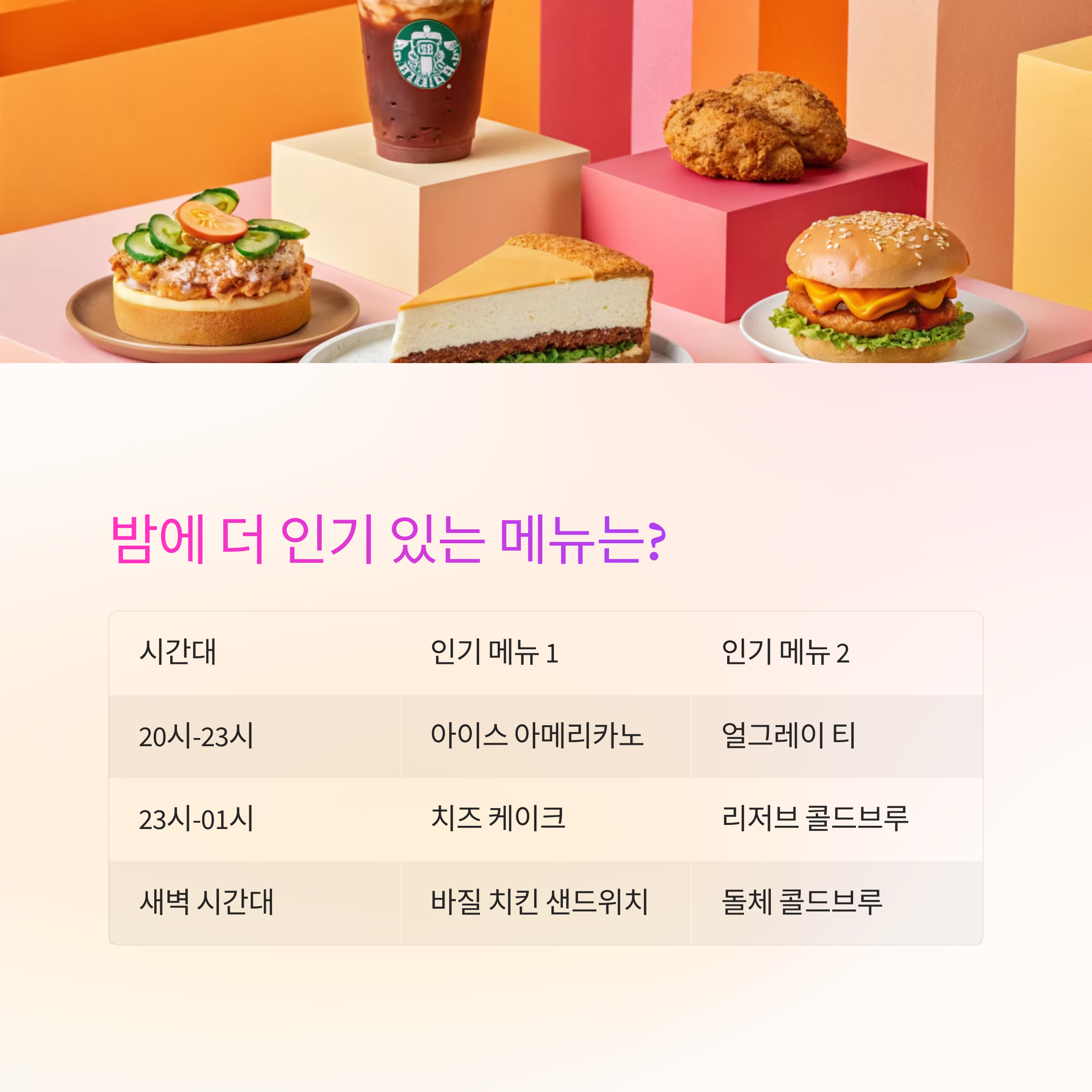 야간 방문 고객이 더 좋아하는 메뉴는?