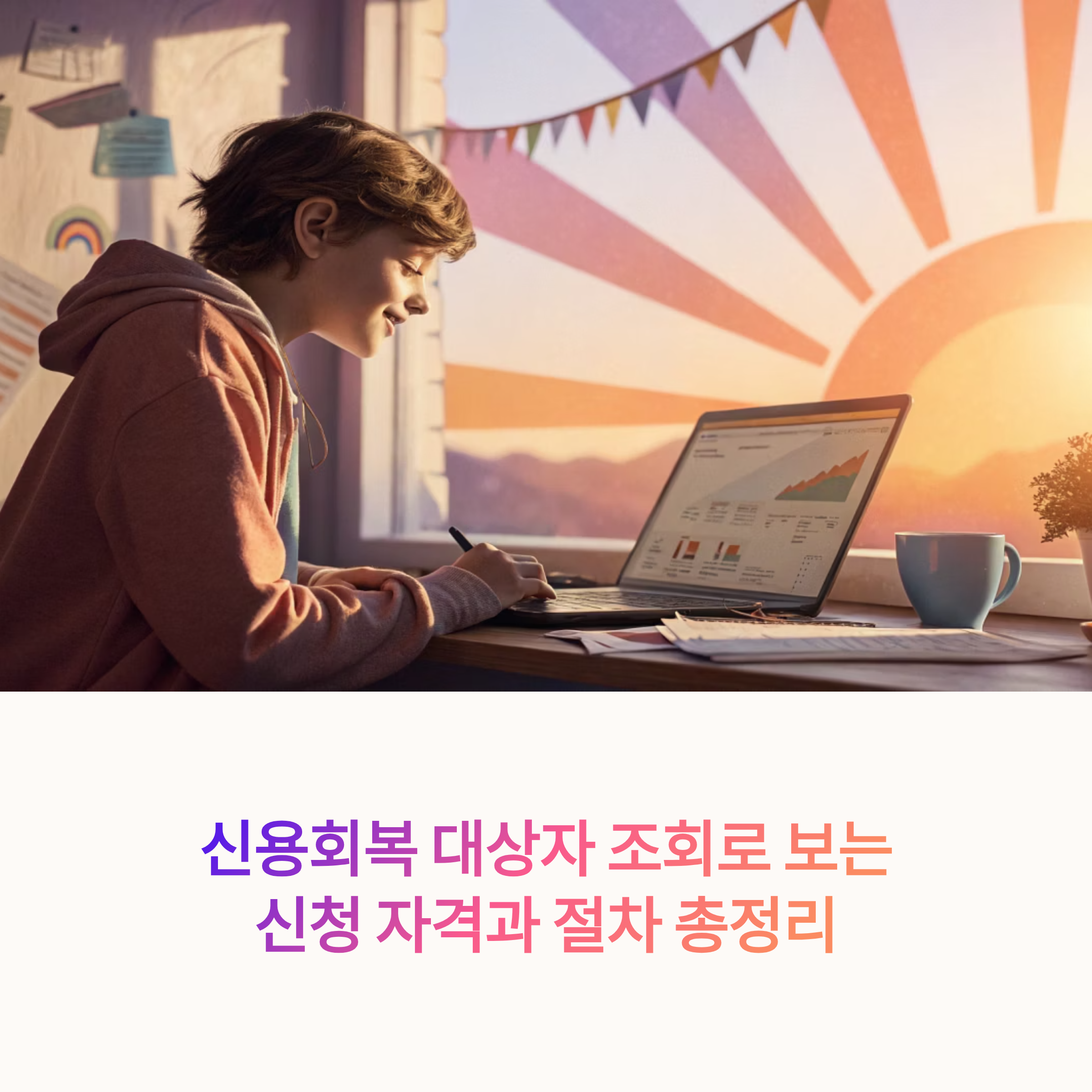 최근 발표된 신용회복 정책 이후 많은 분들이 “나는 대상자일까?”라는 궁금증을 가지고 계십니다. 정부와 신용회복위원회가 추진하는 이번 제도는 과도한 채무 부담으로 어려움을 겪는 개인이 다시 경제활동을 이어갈 수 있도록 돕는 것이 핵심입니다. 본 글에서는 신용회복 대상자 조회 방법부터 신청 자격, 절차, 감면율, 그리고 신용점수 회복 과정까지 한눈에 정리해 드리겠습니다.