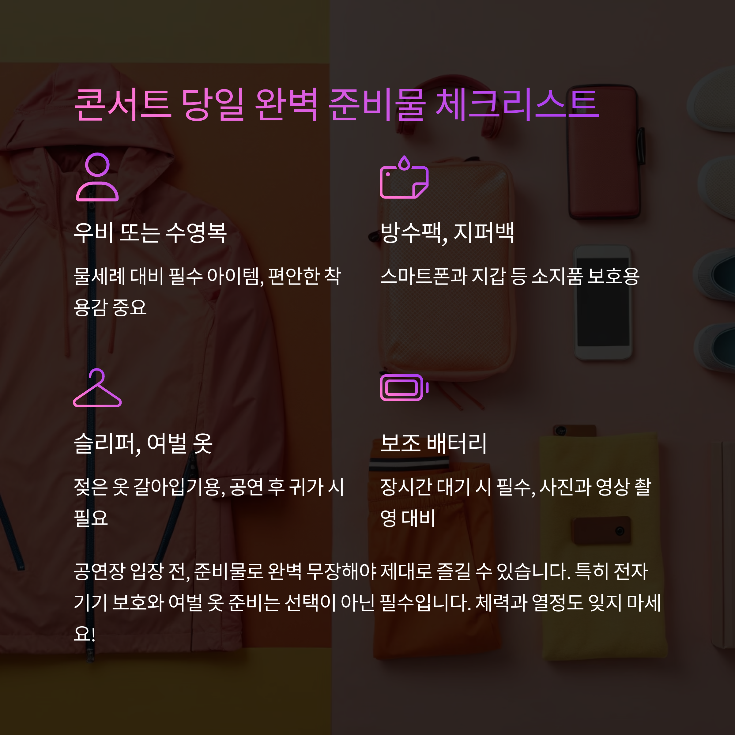 공연장 입장 전, 준비물로 완벽 무장해야 제대로 즐길 수 있습니다.