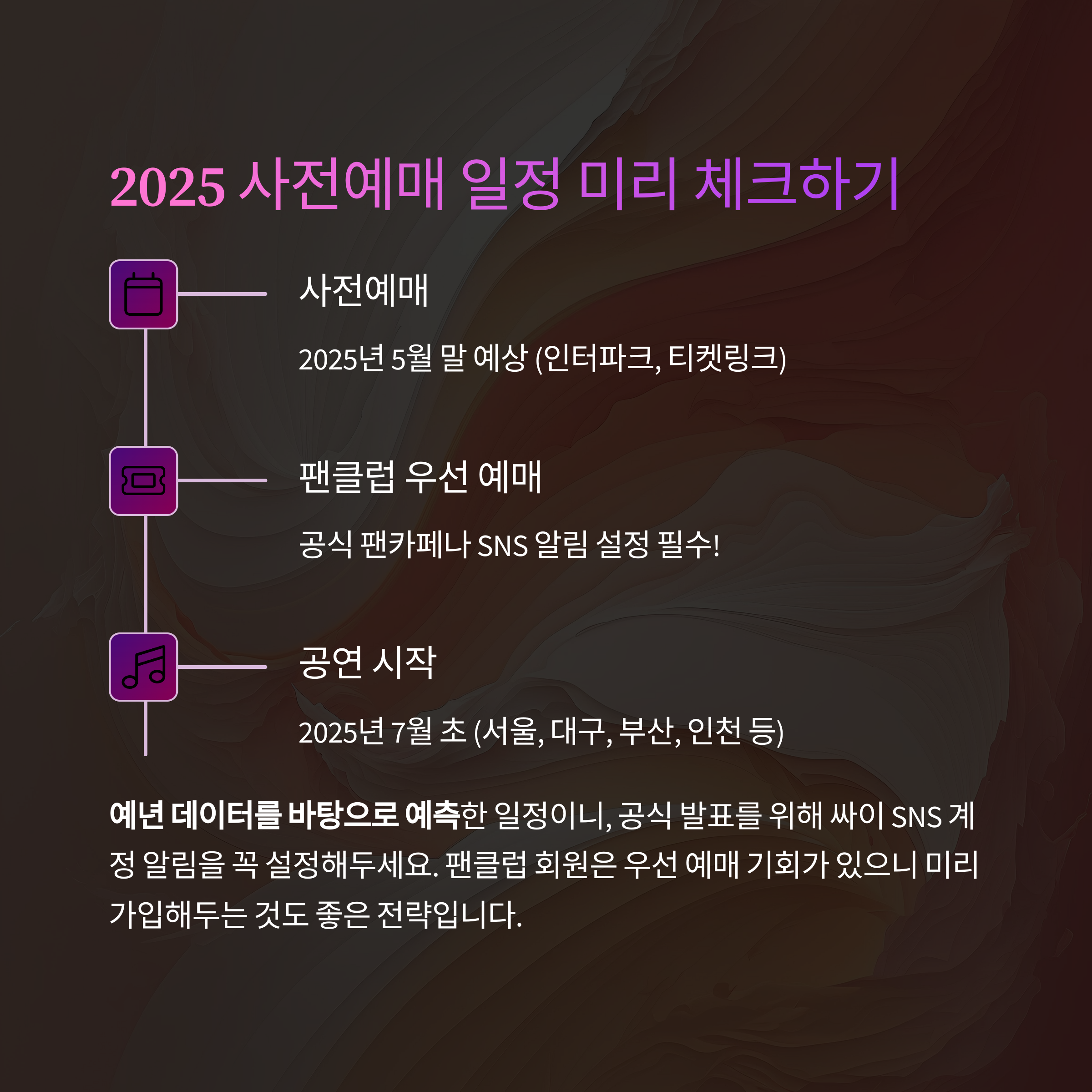 이번 글에서는 사전예매 전략, 공연 일정 예측, 준비물 팁까지 완벽하게 정리해드립니다.