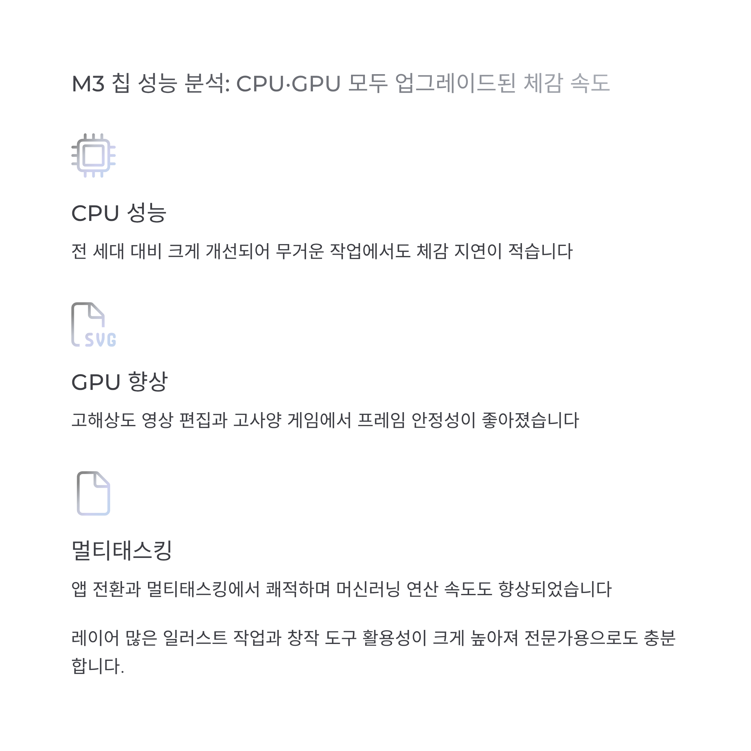 M3 칩 성능 분석: CPU·GPU 모두 업그레이드된 체감 속도