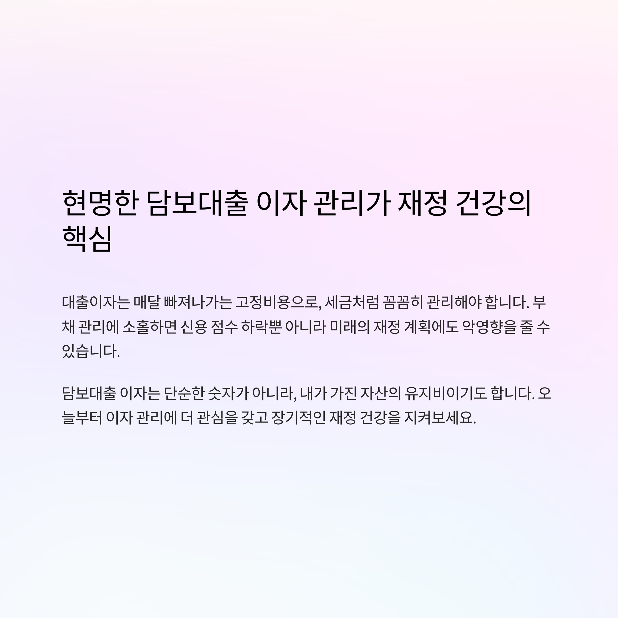 담보대출 이자는 단순한 숫자가 아니라, 내가 가진 자산의 유지비이기도 합니다.
