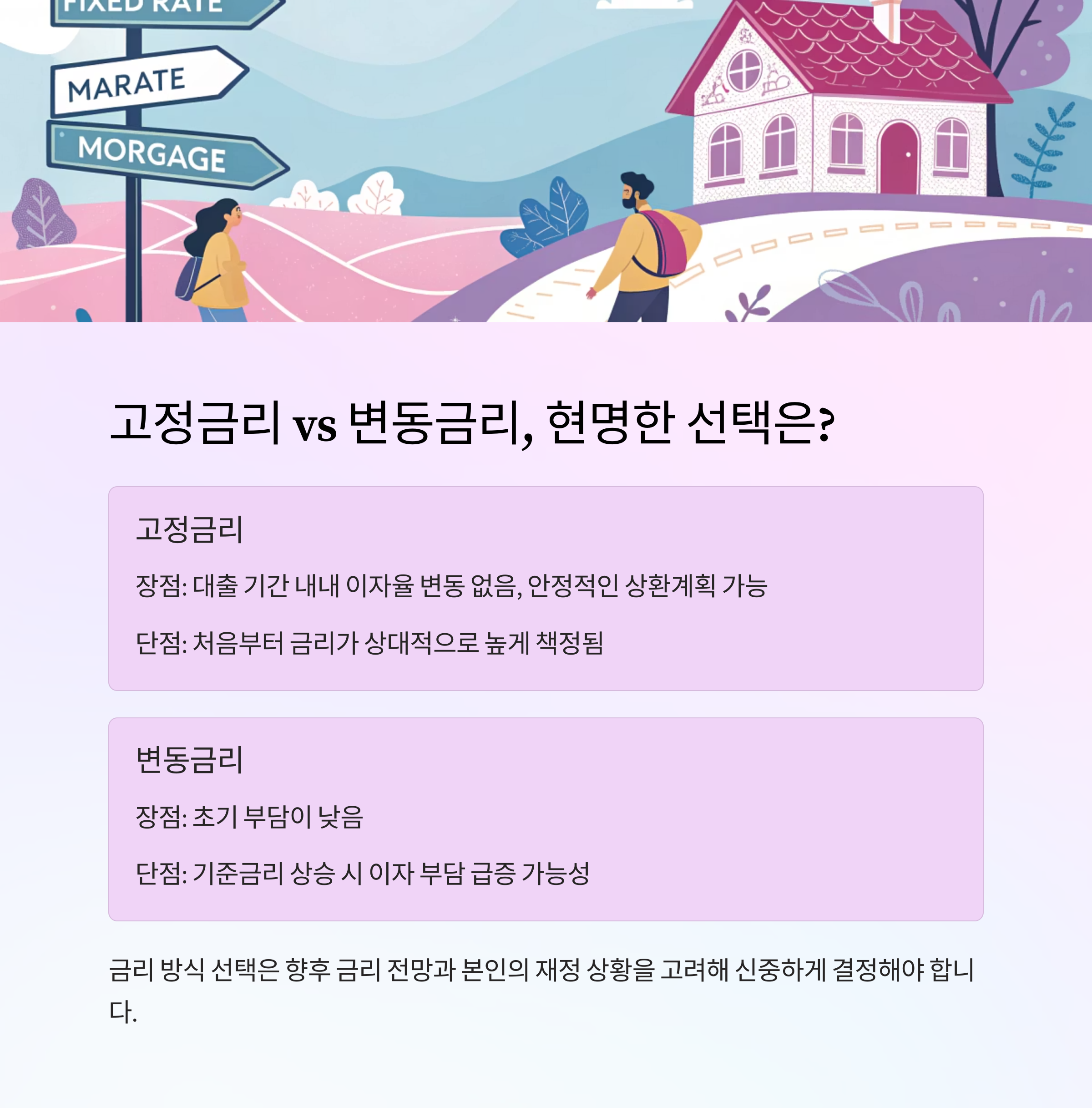 | 금리 방식 | 장점 | 단점 |