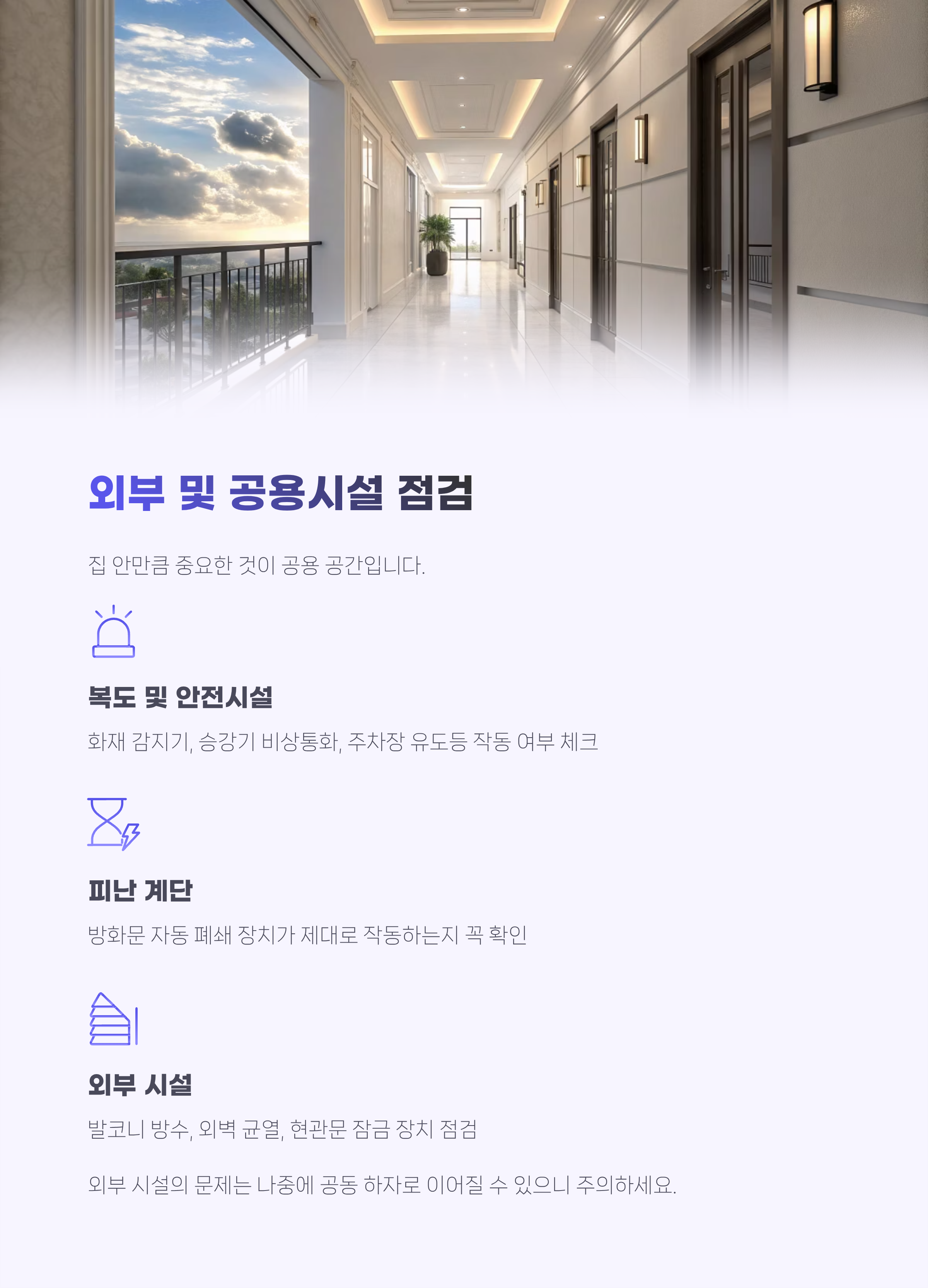 외부 및 공용시설 점검 잊지 말기