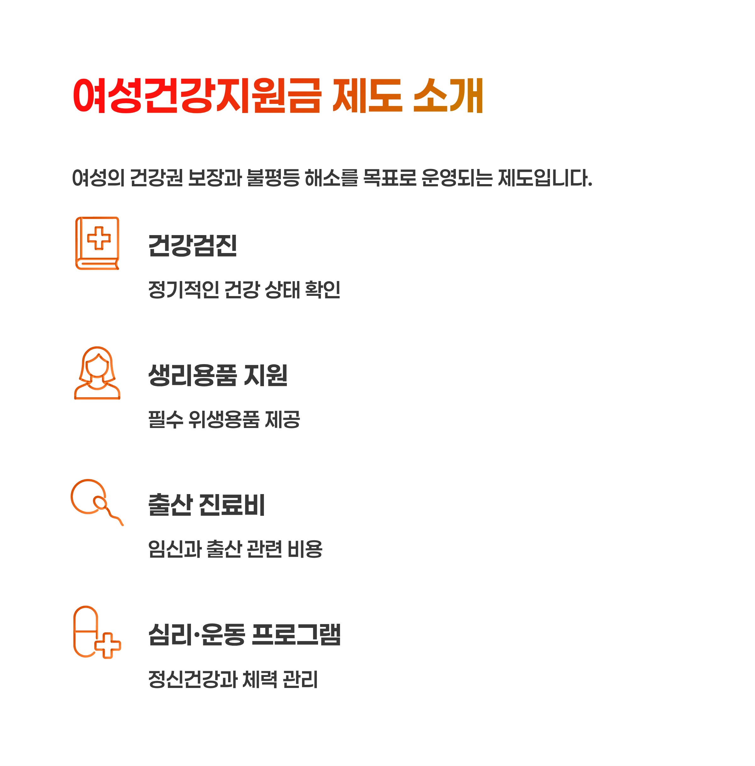 여성건강지원금은 여성의 건강권 보장과 불평등 해소를 목표로 운영되는 제도입니다. 건강검진, 생리용품 지원, 출산 진료비, 심리·운동 프로그램까지 다양한 분야에서 혜택을 제공하고 있습니다.