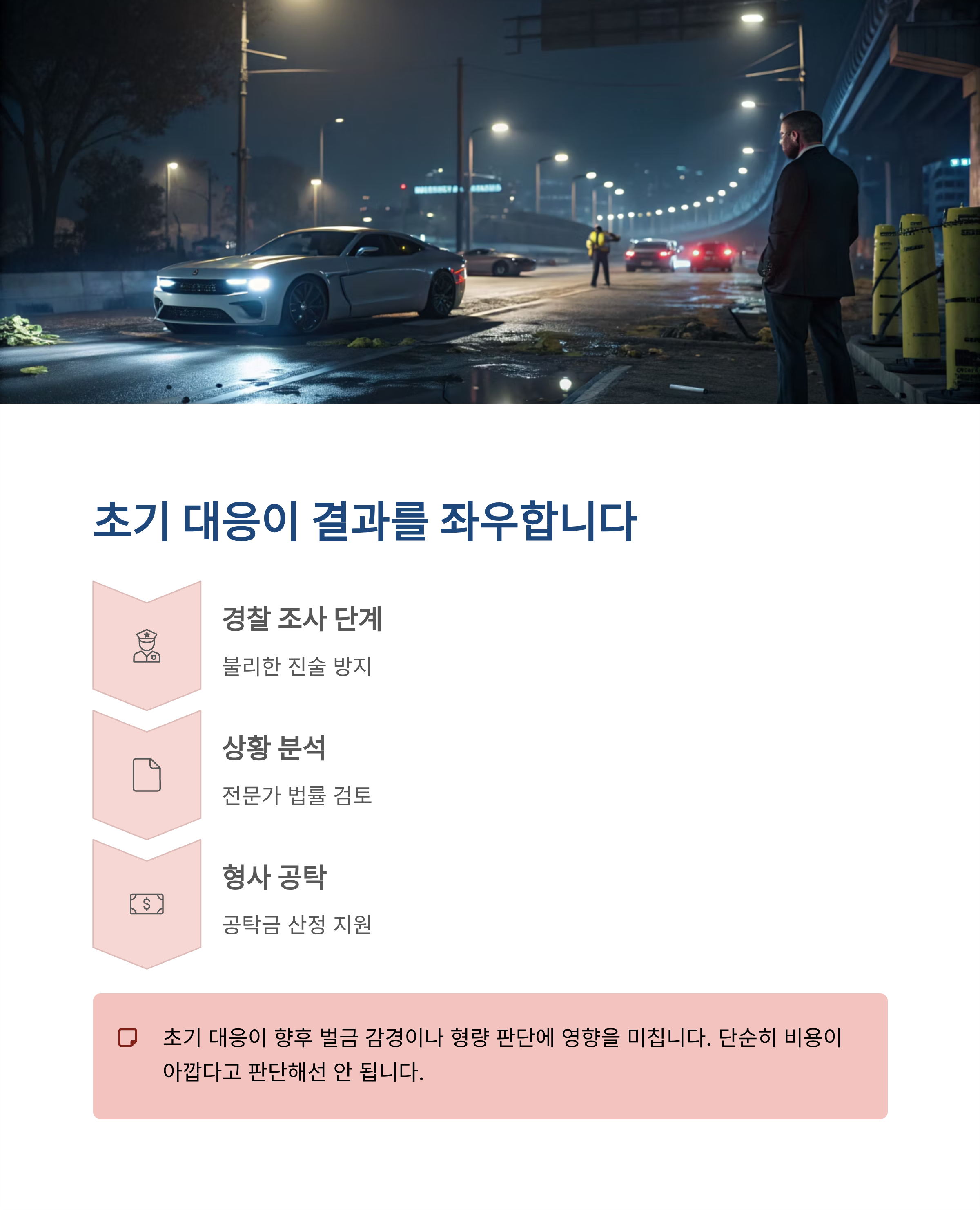 변호사는 상황 분석을 통해 불리한 진술을 피하도록 돕고, 형사 공탁이 필요할 경우 공탁금 산정까지도 함께 진행해줍니다. 이 초기 대응이 향후 벌금 감경이나 형량 판단에도 영향을 미칠 수 있기 때문에 단순히 비용이 아깝다고 판단해선 안 됩니다.