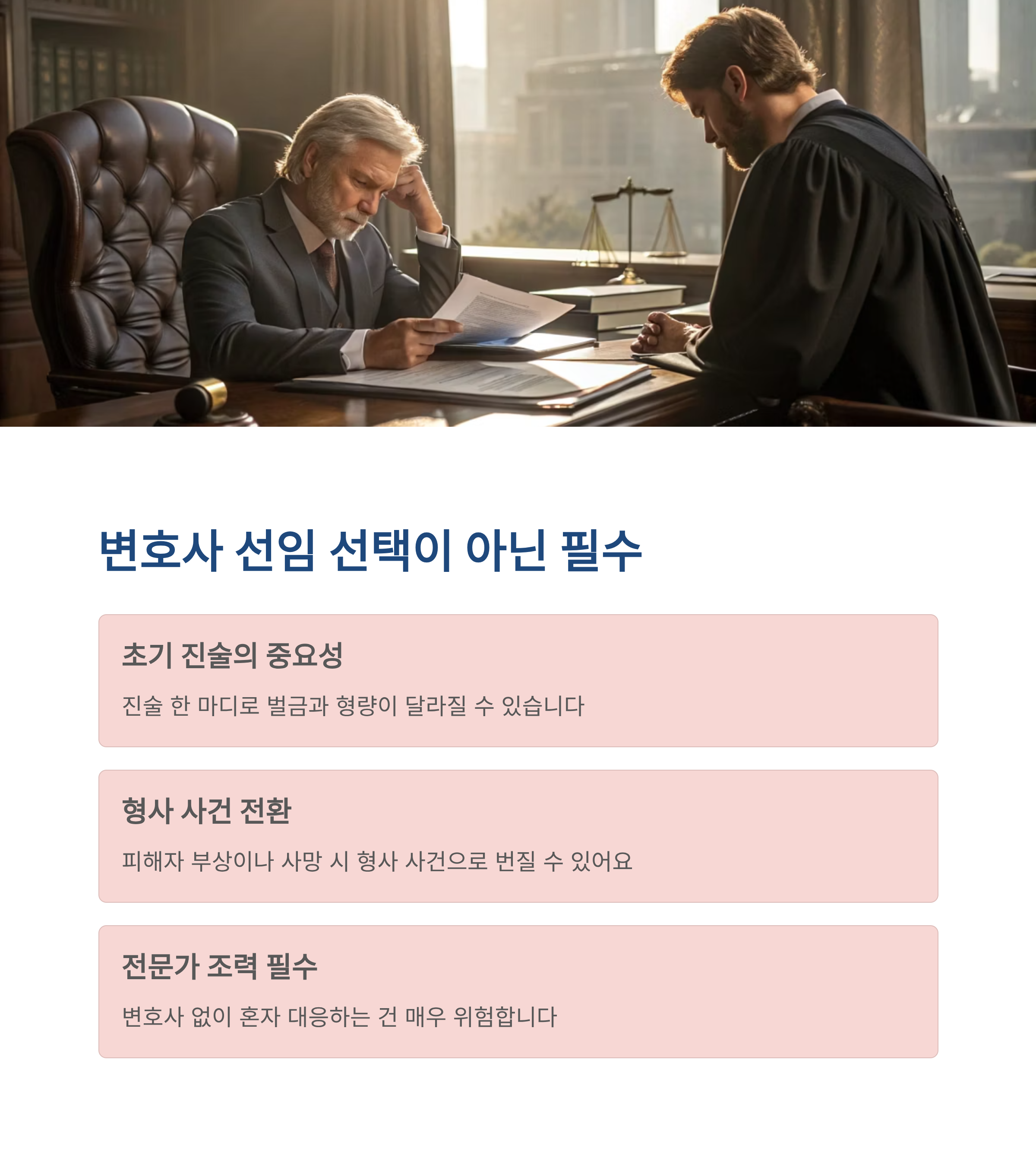 교통사고가 형사 사건으로 이어졌다면, 경찰 조사 단계부터 전문 변호사의 조력이 절대적으로 중요합니다.