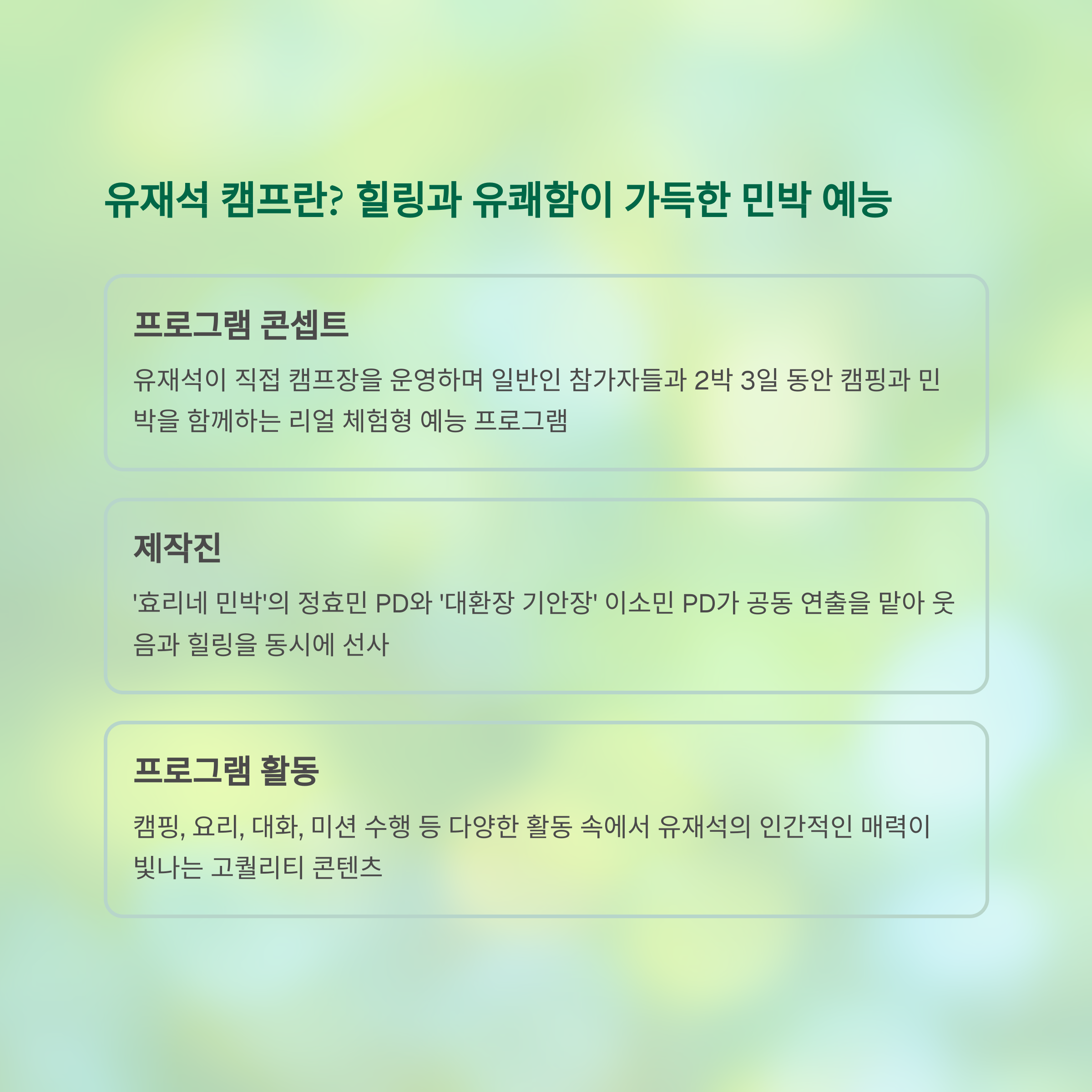 유재석 캠프란? 힐링과 유쾌함이 가득한 민박 예능