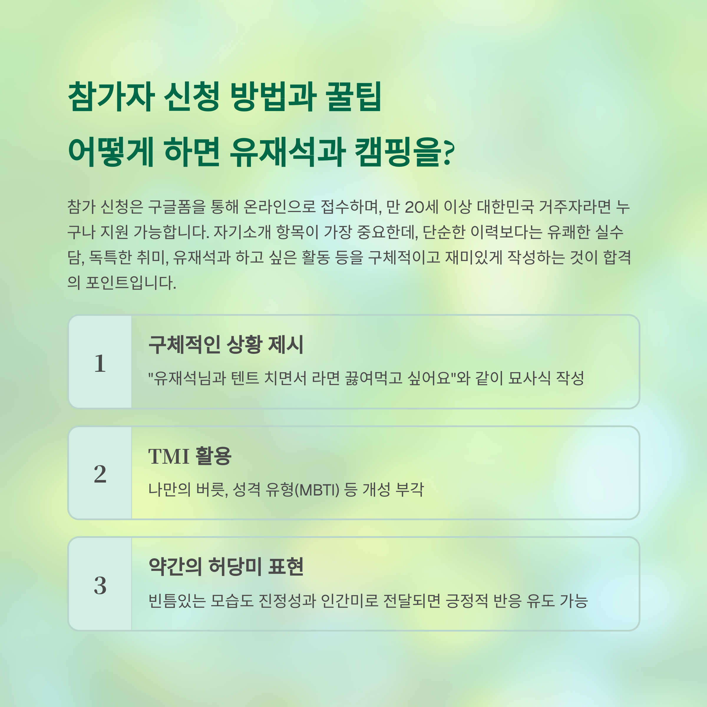 참가자 신청 방법과 꿀팁: 어떻게 하면 유재석과 캠핑을?