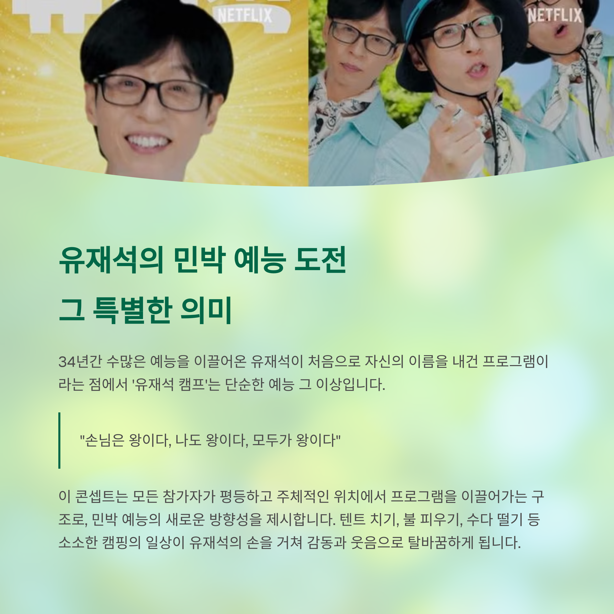 ‘유재석 캠프’는 단순한 예능 그 이상입니다.