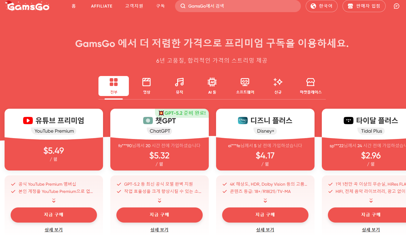 최근 많은 분들이 주목하고 있는 방법이 바로 'OTT 구독 공유 플랫폼'을 활용하는 방식이에요. 대표적으로 돌로퍼와 겜스고 같은 플랫폼이 있고, 이곳에서 가족 요금제나 해외 요금제를 기반으로 계정을 공유해 훨씬 저렴한 가격에 유튜브 프리미엄을 이용할 수 있습니다.