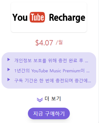 | 음악 스트리밍 포함 | 유튜브 프리미엄 또는 공유 플랫폼 이용 |