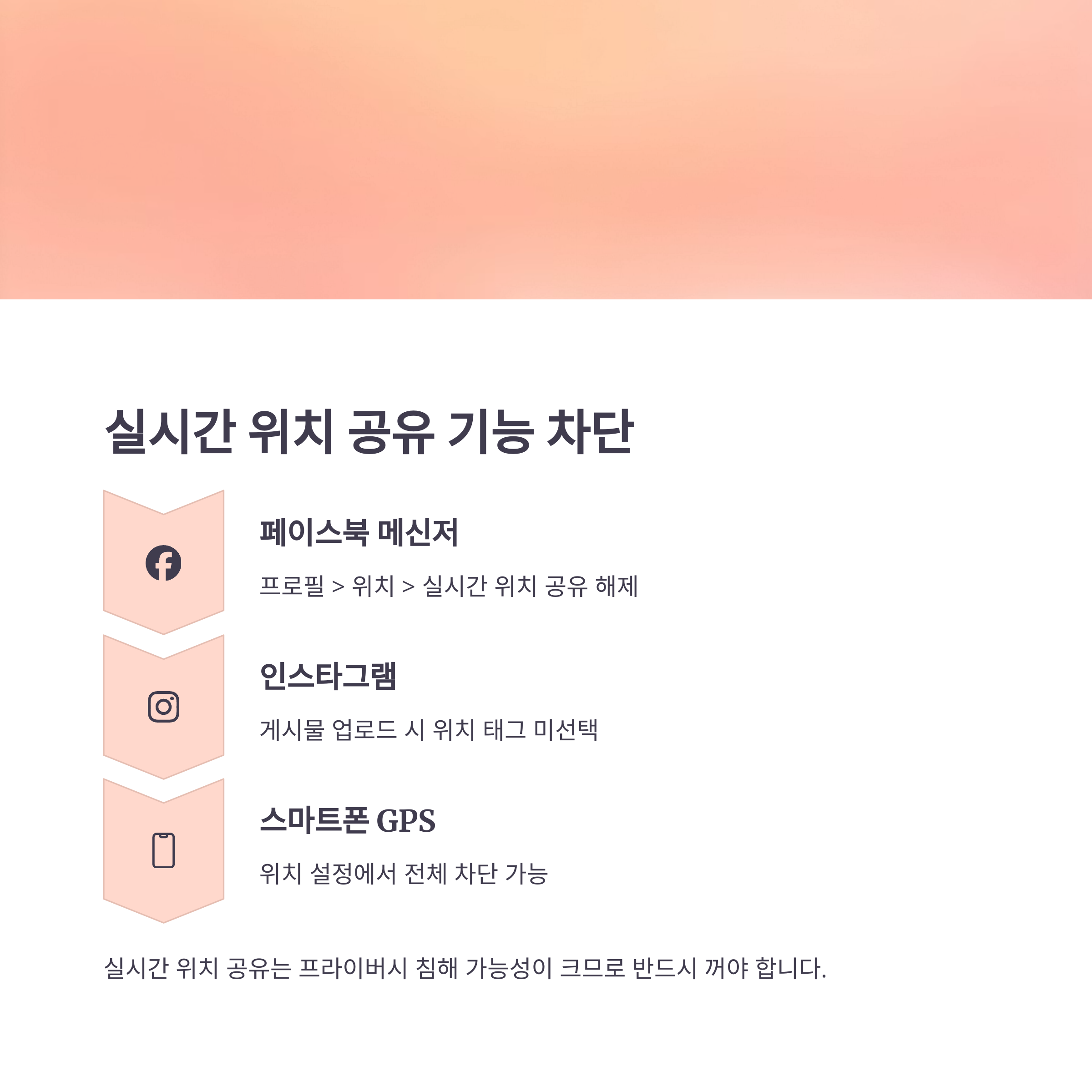 실시간 위치 공유는 특히 프라이버시 침해 가능성이 크기 때문에 반드시 꺼야 합니다.