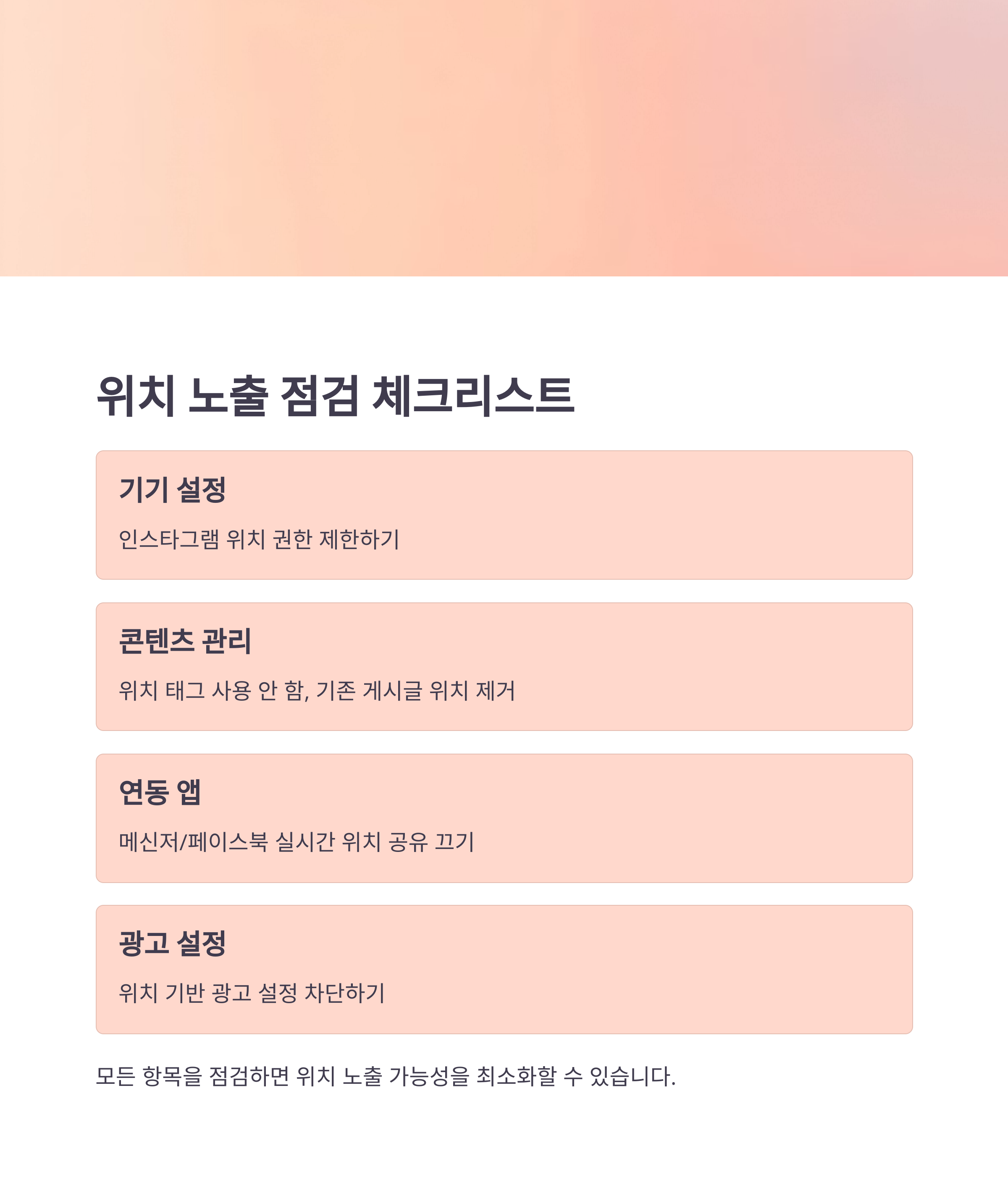 위 모든 항목을 점검하면 위치 노출 가능성을 최소화할 수 있습니다.