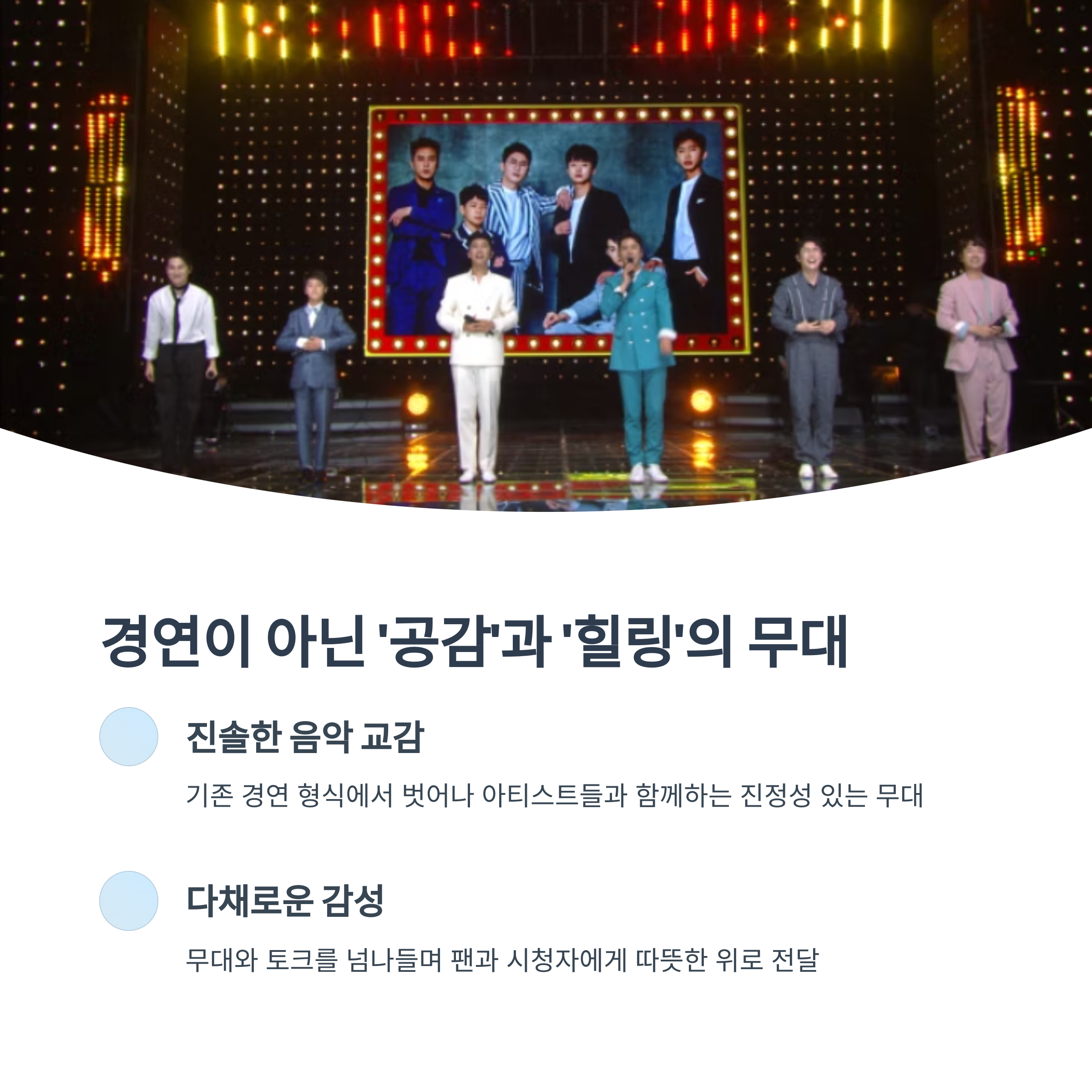경연이 아닌 ‘공감’과 ‘힐링’ 중심의 무대 구성
