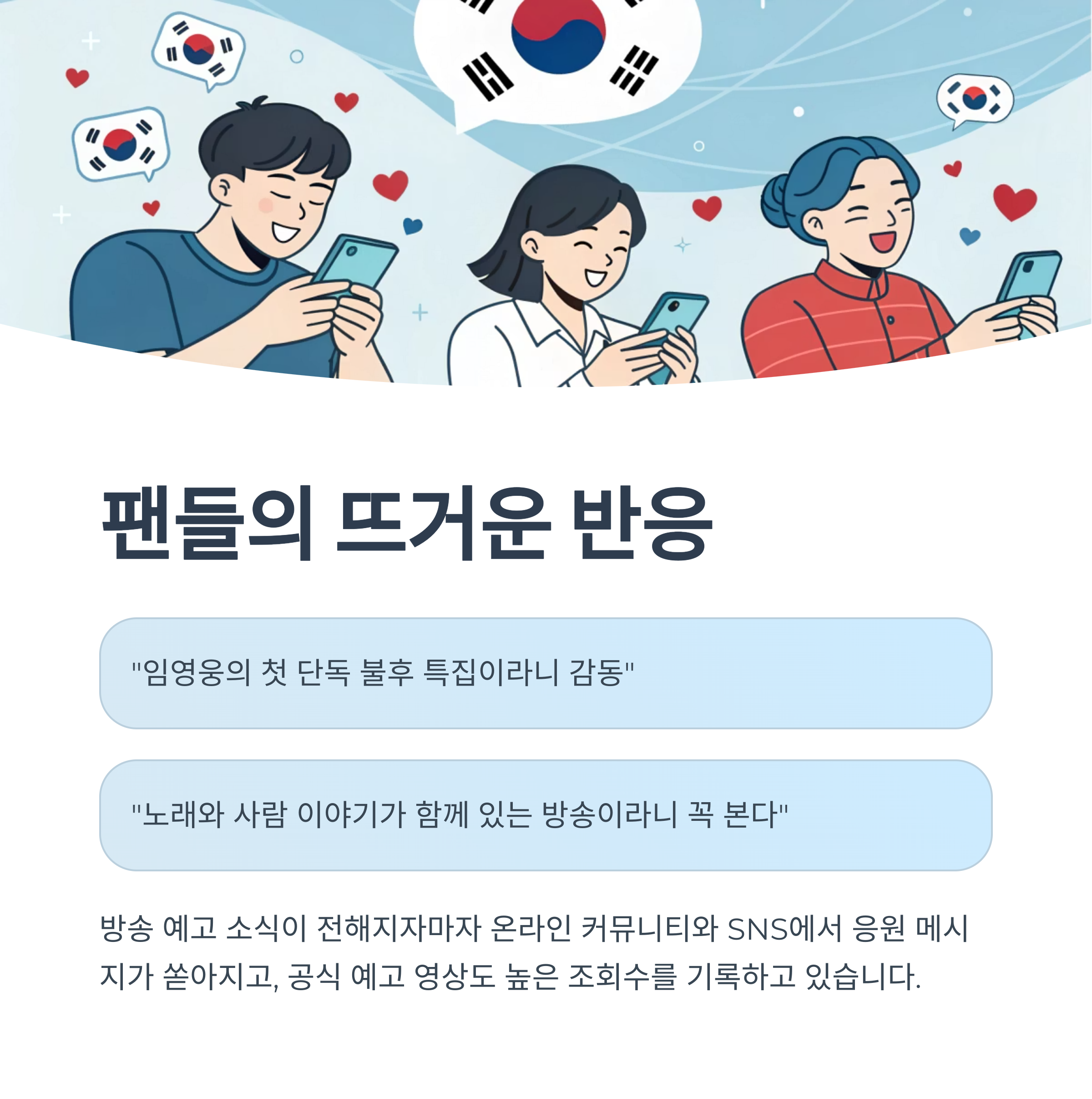 이번 특집은 임영웅의 음악 여정과 진심 어린 이야기를 전하는