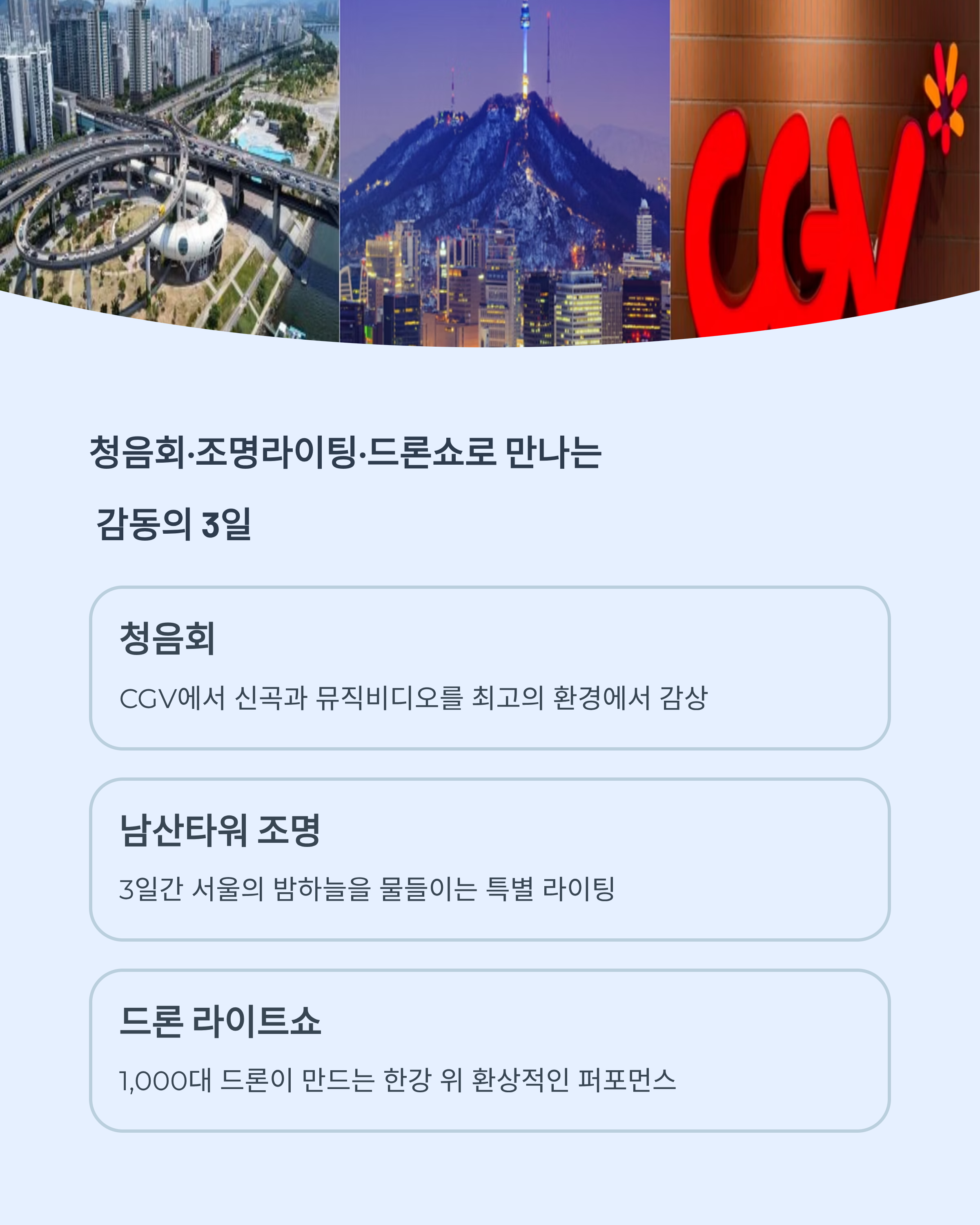 서울 도심을 물들이는 세 가지 이벤트가 펼쳐집니다. 팬이라면 절대 놓칠 수 없는 순간들입니다.