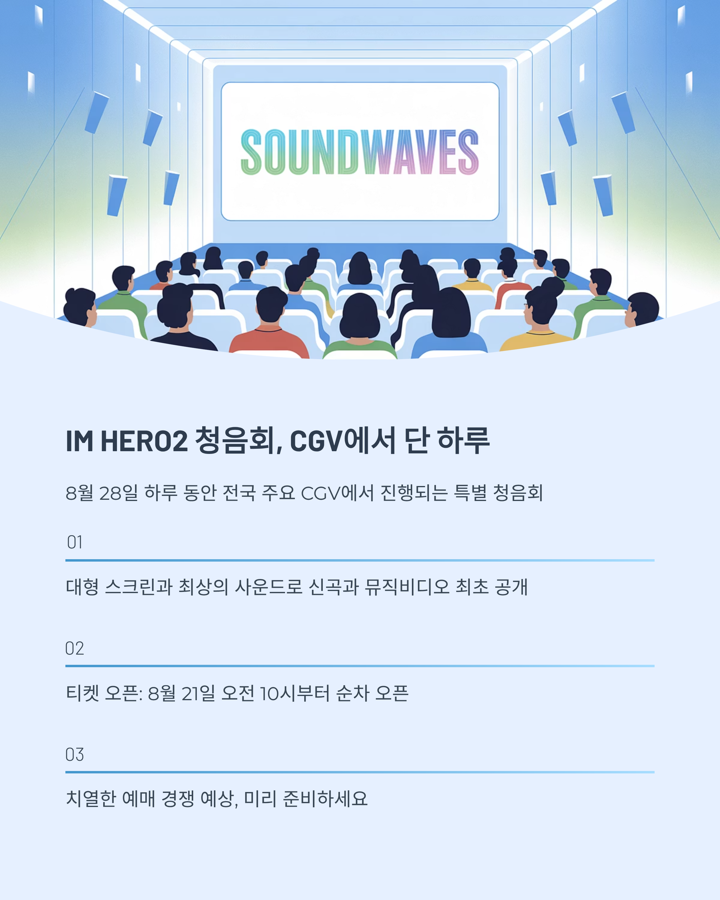 | IM HERO2 청음회 | 신곡·뮤비 최초 공개 | 8월 28일 | 전국 CGV |