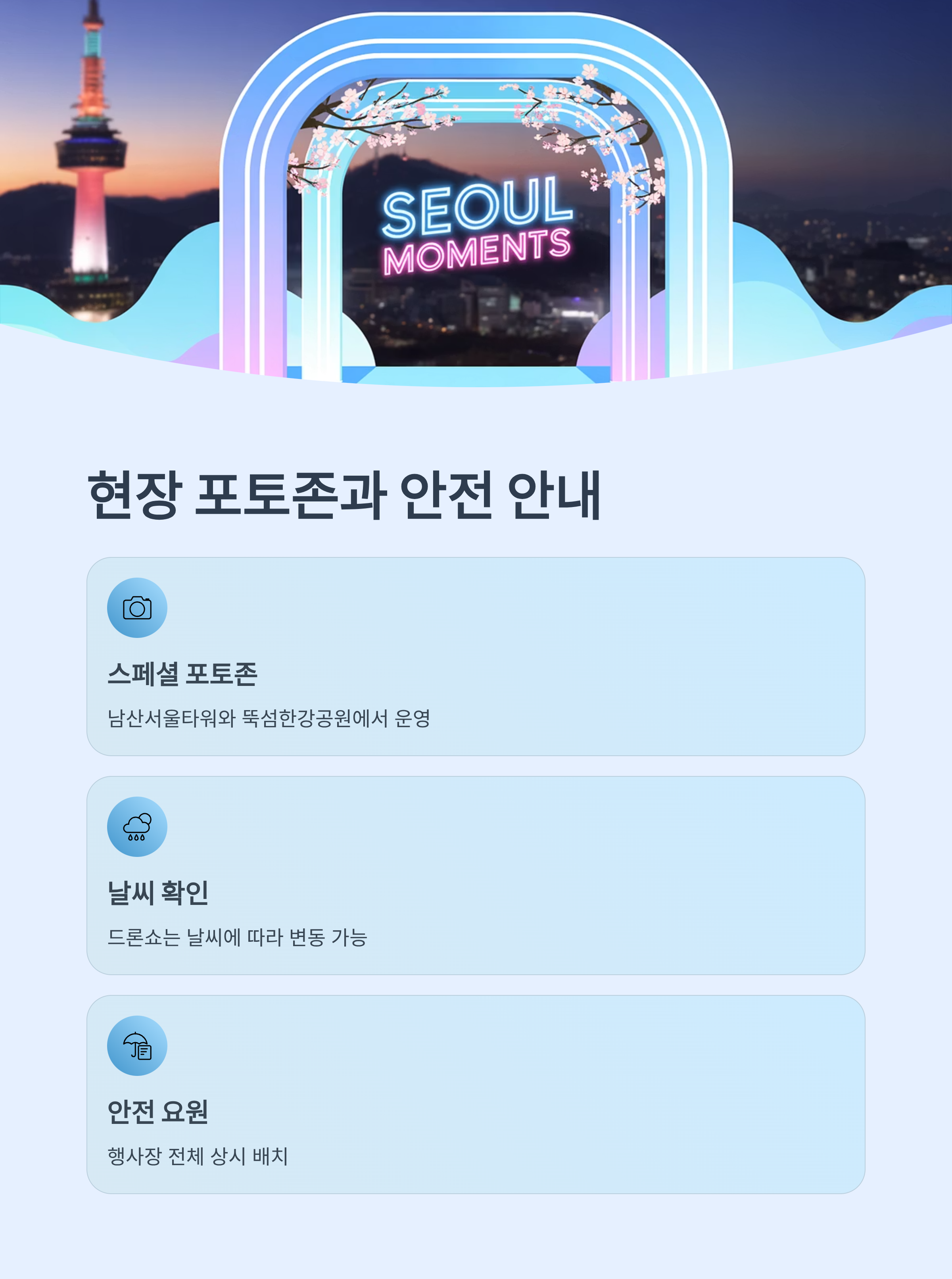 드론 라이트쇼는 날씨 상황에 따라 변동될 수 있으니,