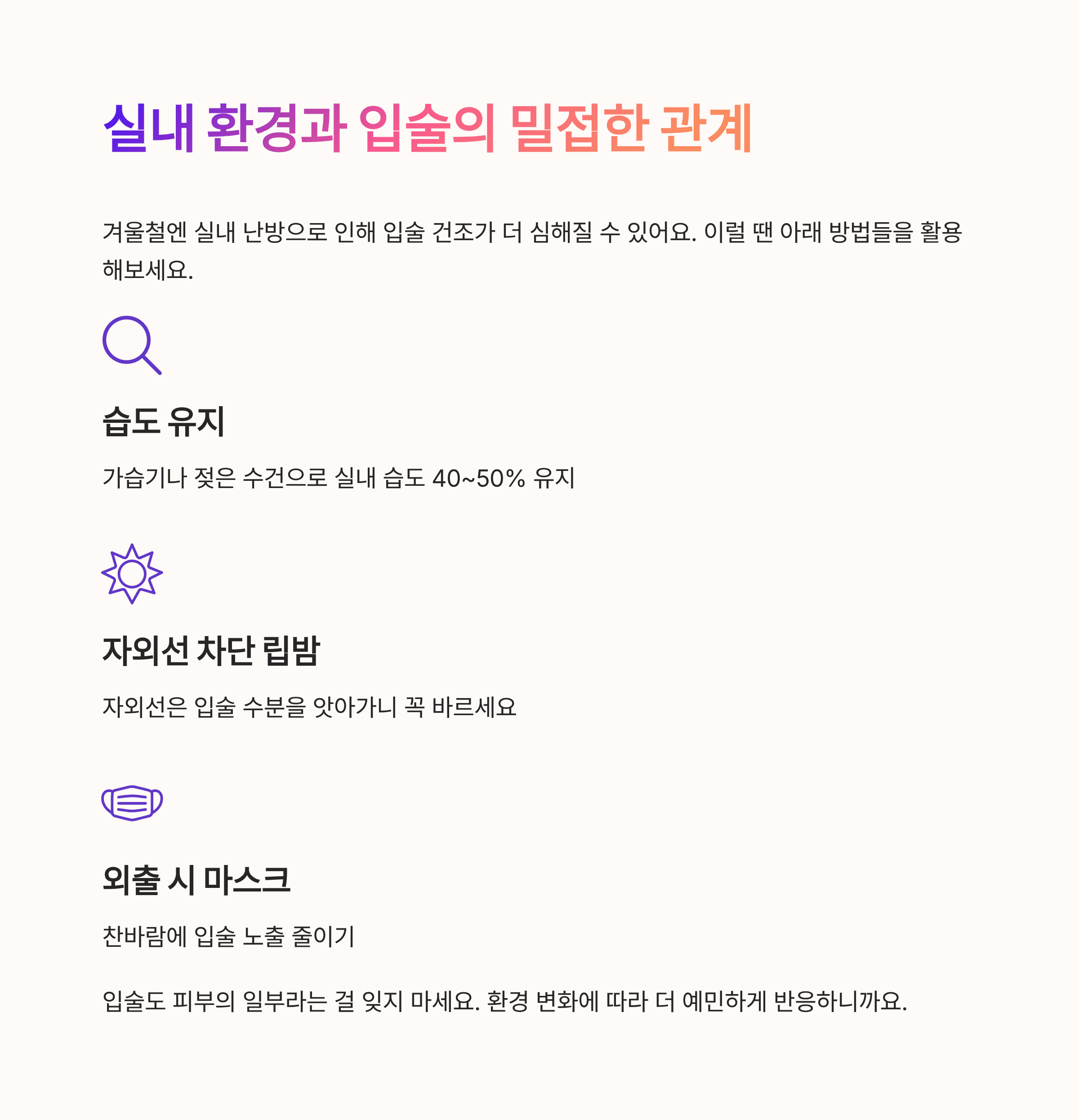 - 외출 시 마스크: 찬바람에 입술 노출 줄이기