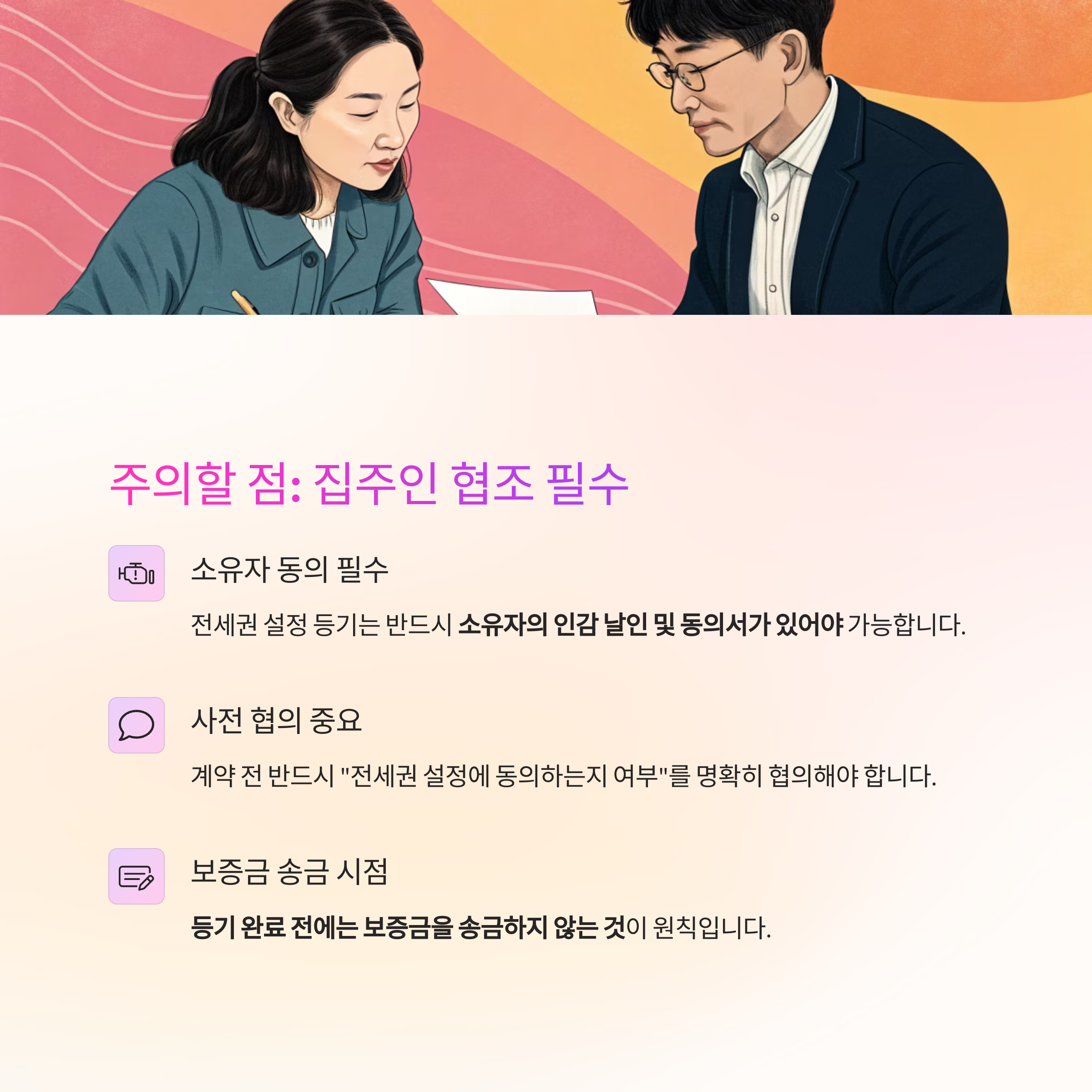 계약 전 반드시 "전세권 설정에 동의하는지 여부"를 명확히 협의해야 합니다