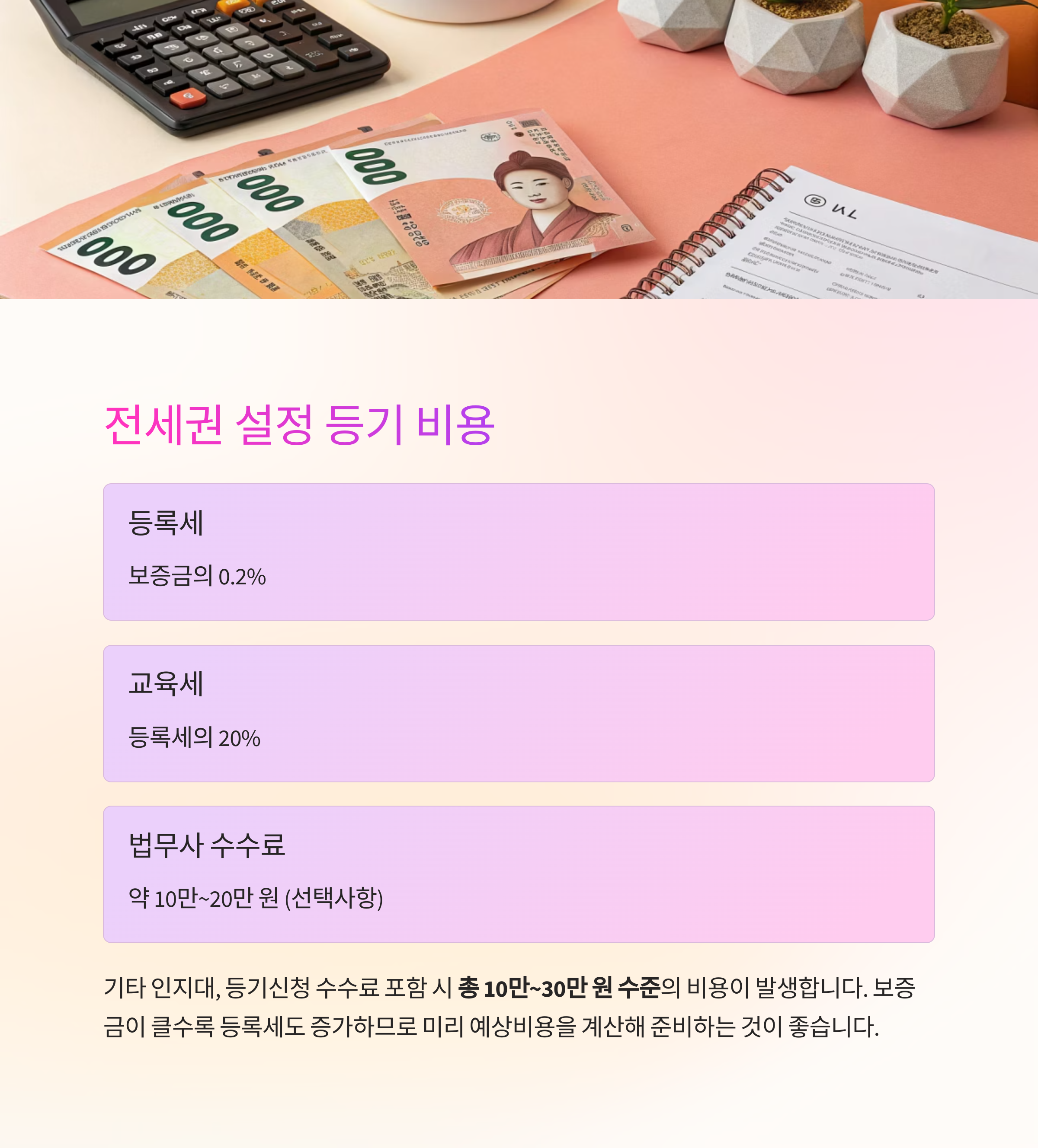 - 기타 인지대, 등기신청 수수료 포함 시 총 10만~30만 원 수준