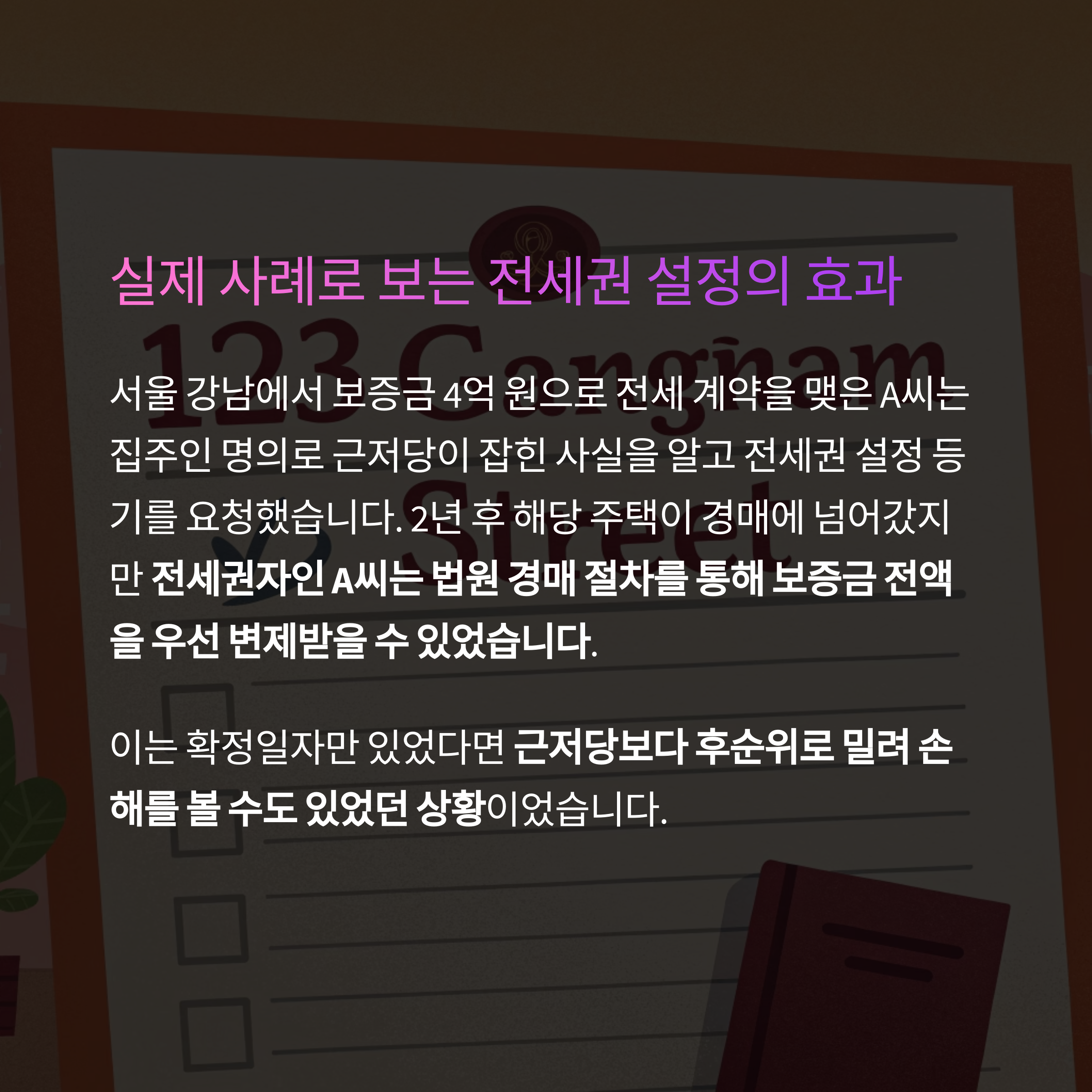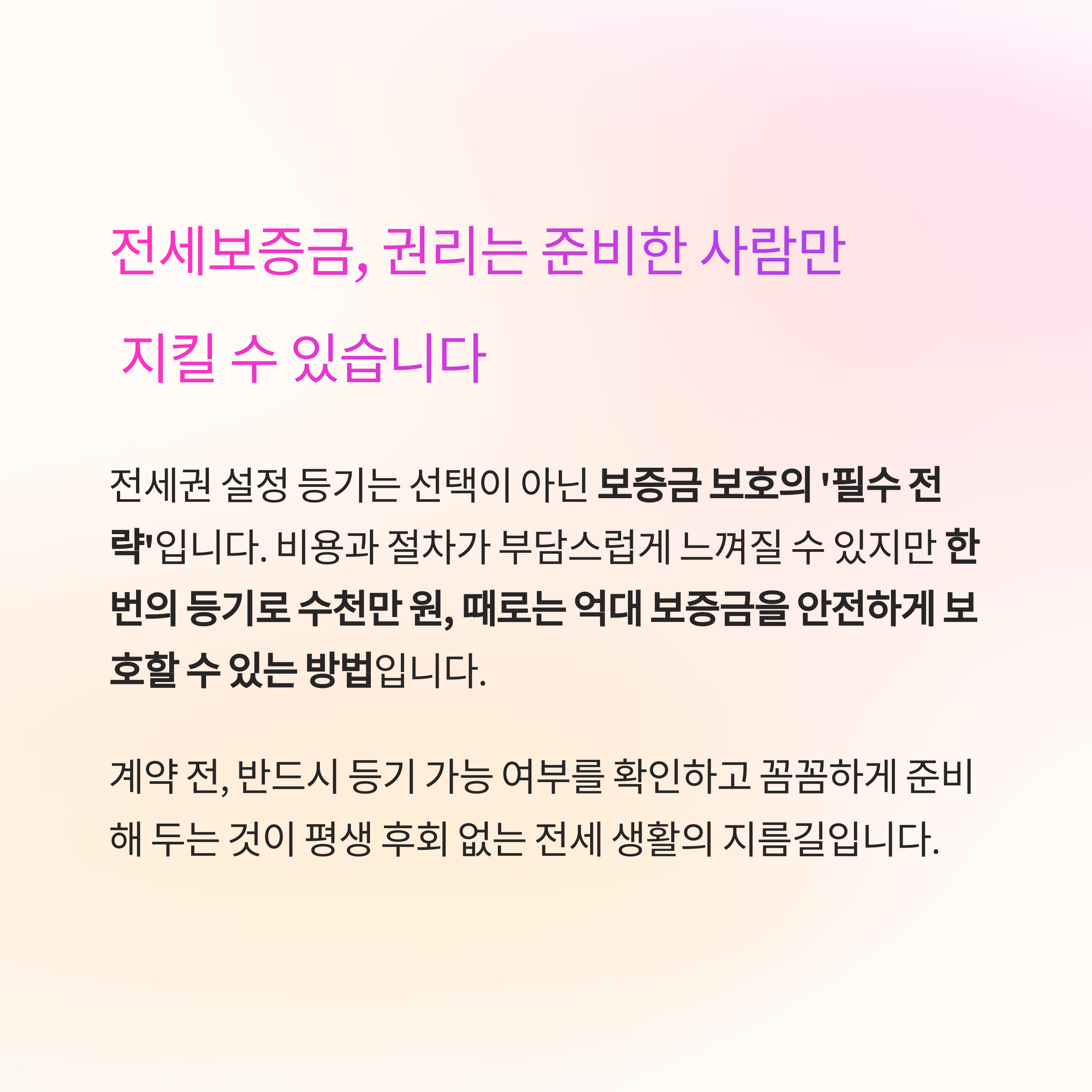 한 번의 등기로 수천만 원, 때로는 억대 보증금을 안전하게 보호할 수 있는 방법입니다