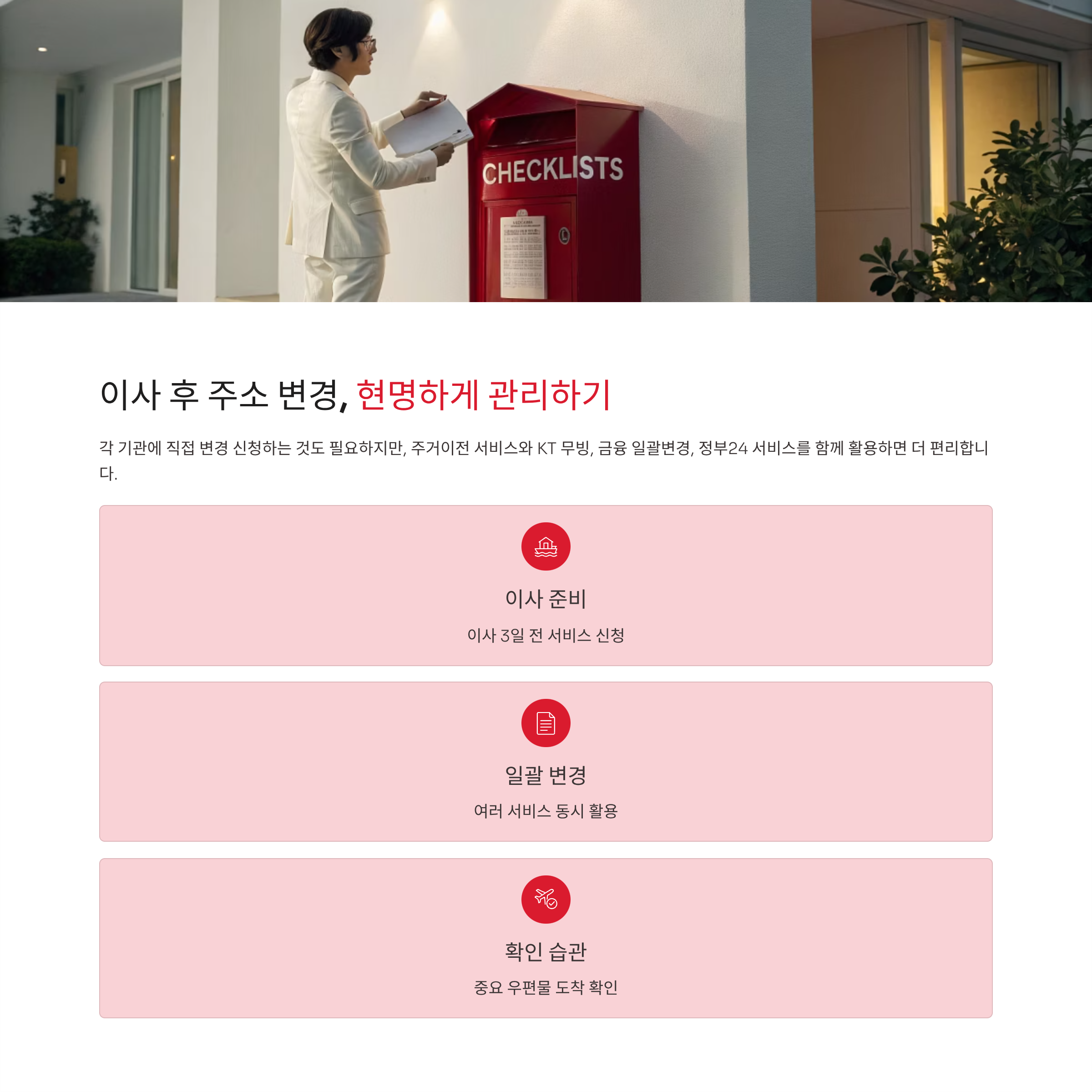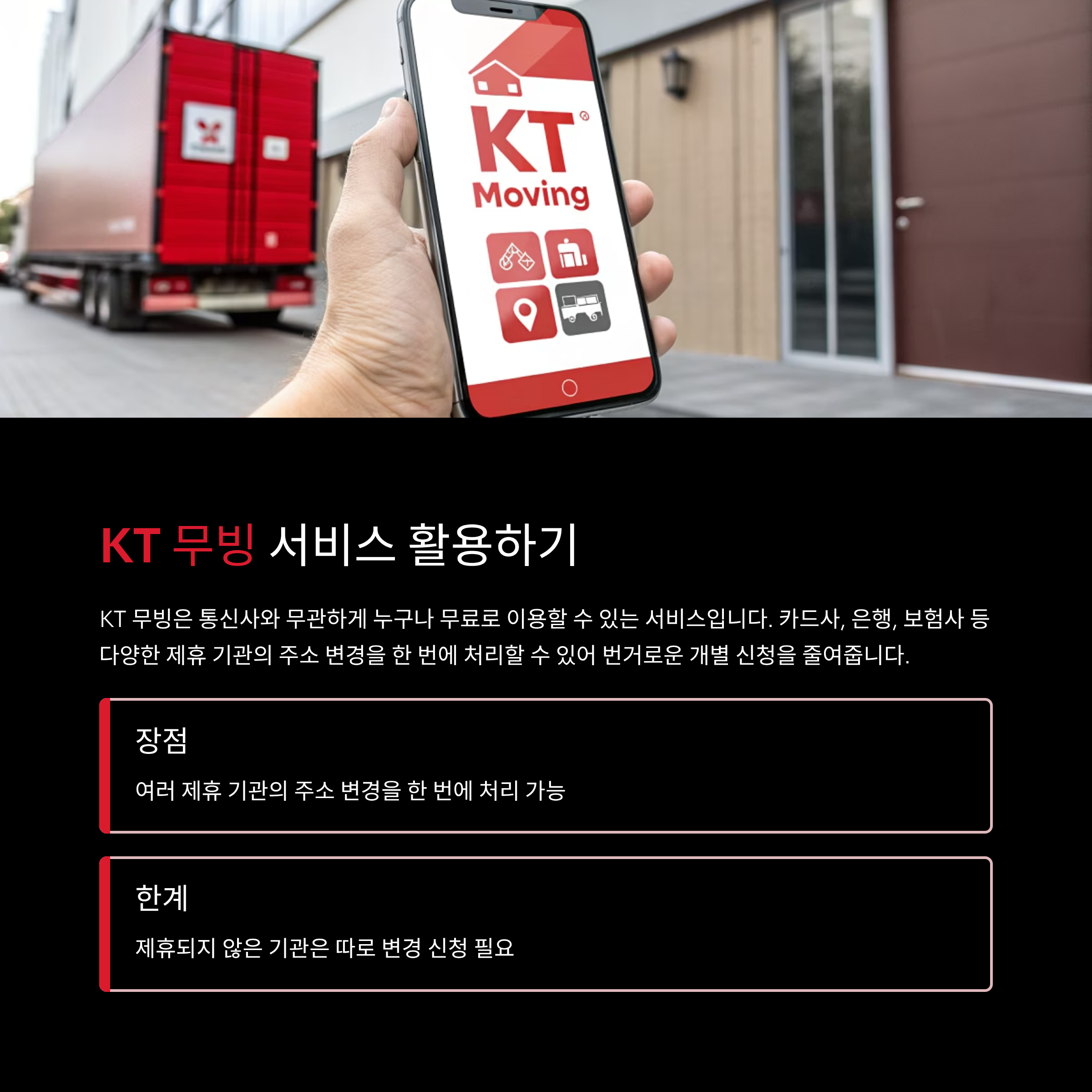 | KT 무빙 | 제휴사 주소 변경 일괄 처리 | 무료 | KT 무빙 사이트 |