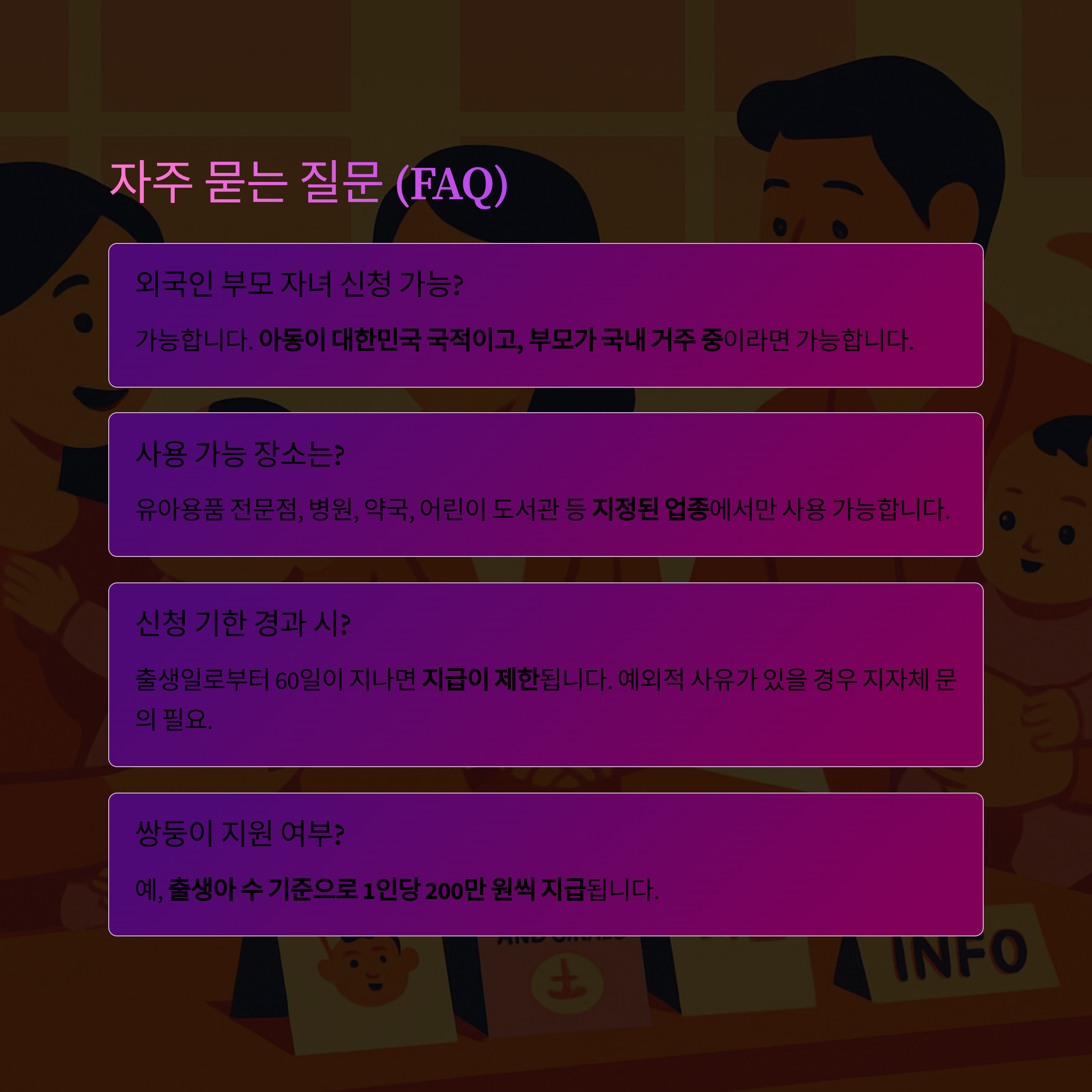 | 사용처 | 유아용품, 병원, 교육비 등 지정 업종 |