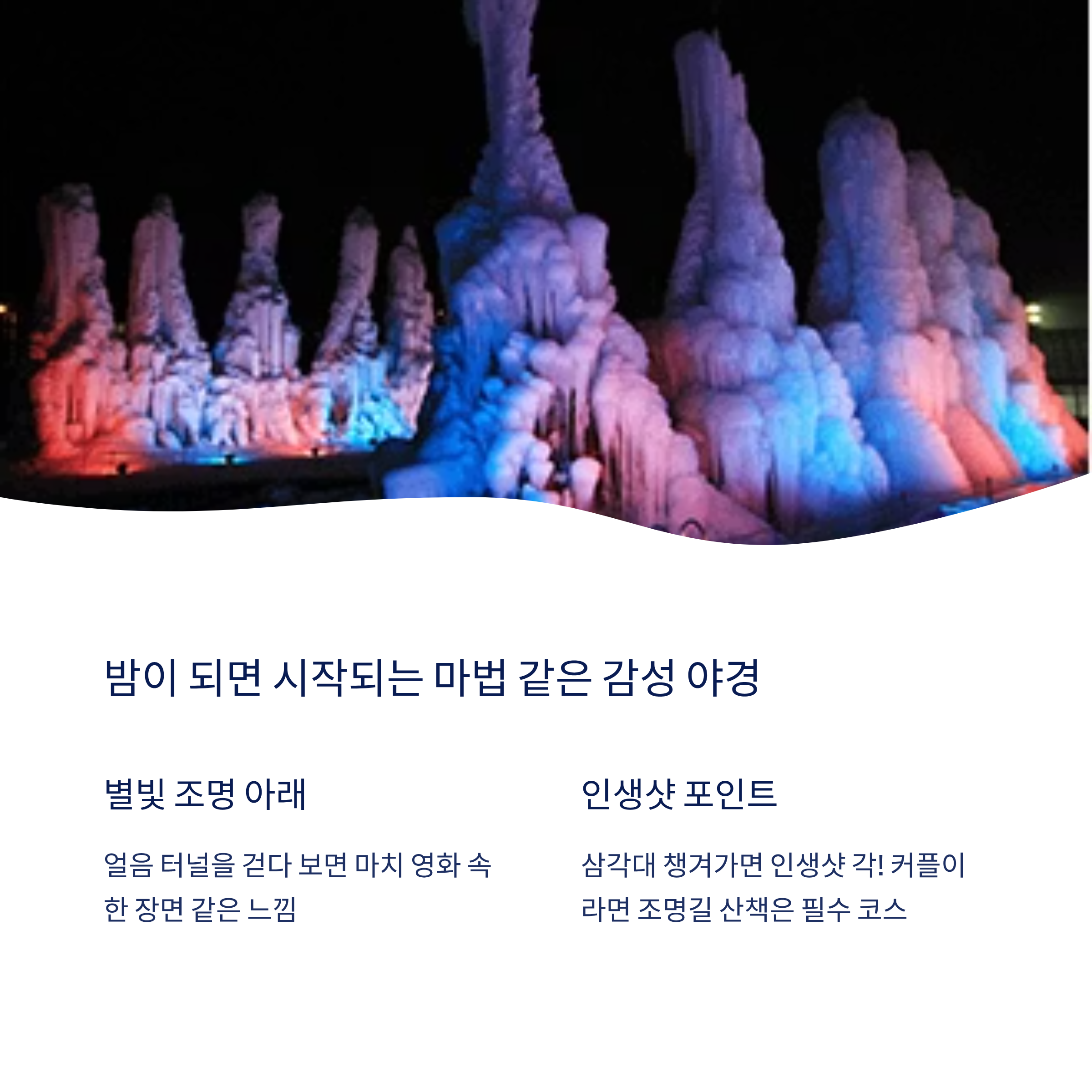 저녁이 되면 조명이 켜지며 시작되는 야경 체험은