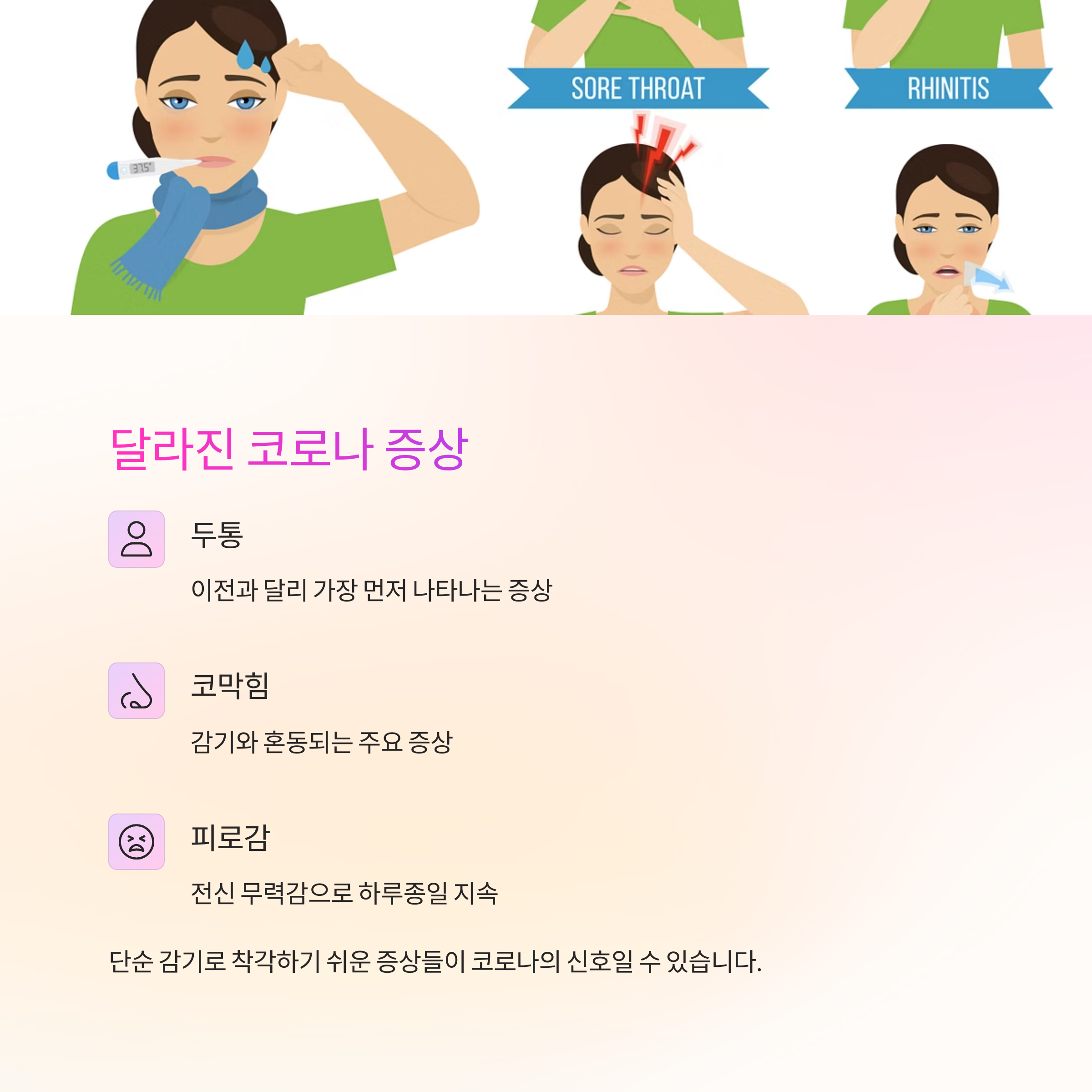 코로나 증상, 이제는 이렇게 나타납니다