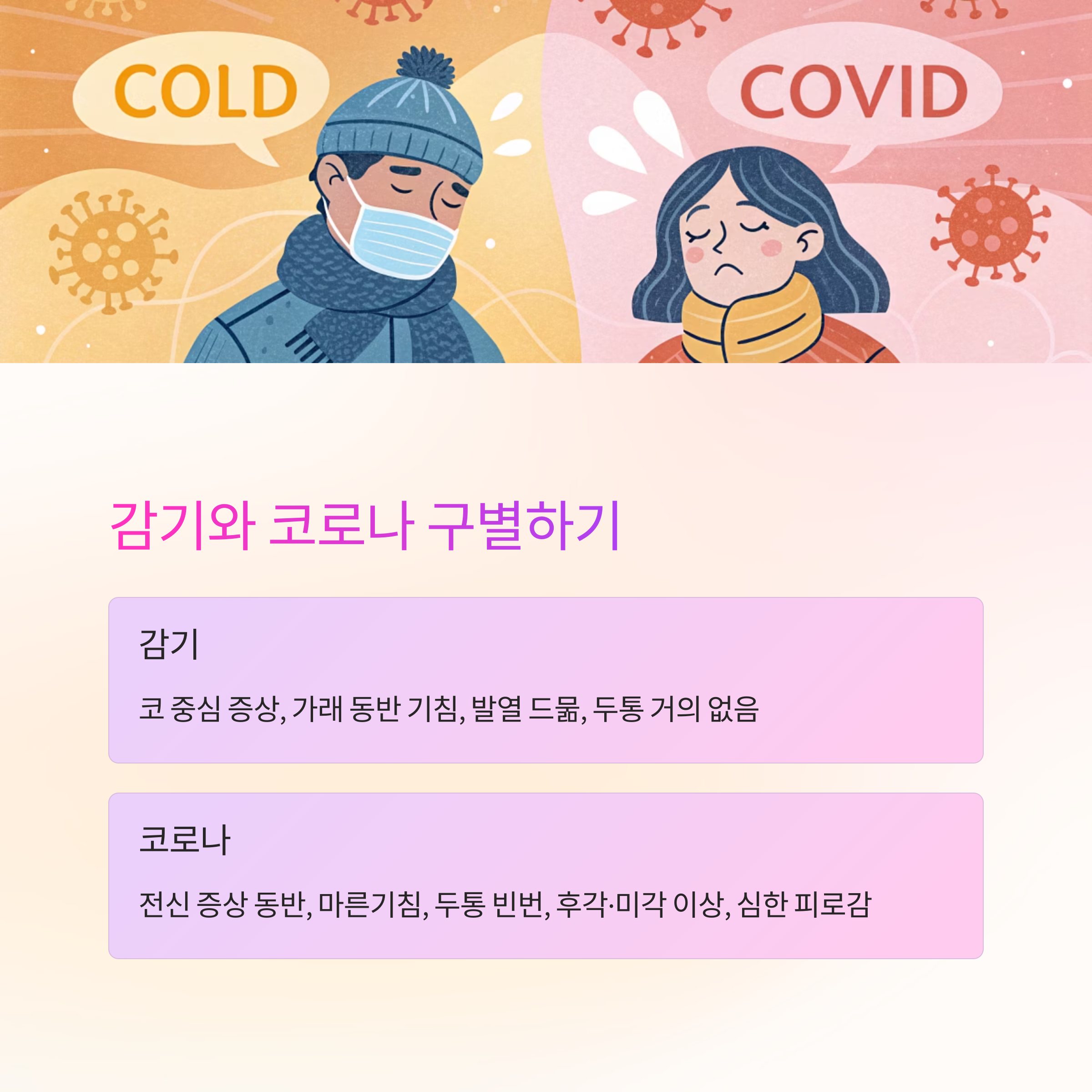 그리고 감기와 구분하는 방법까지 구체적으로 정리해드립니다