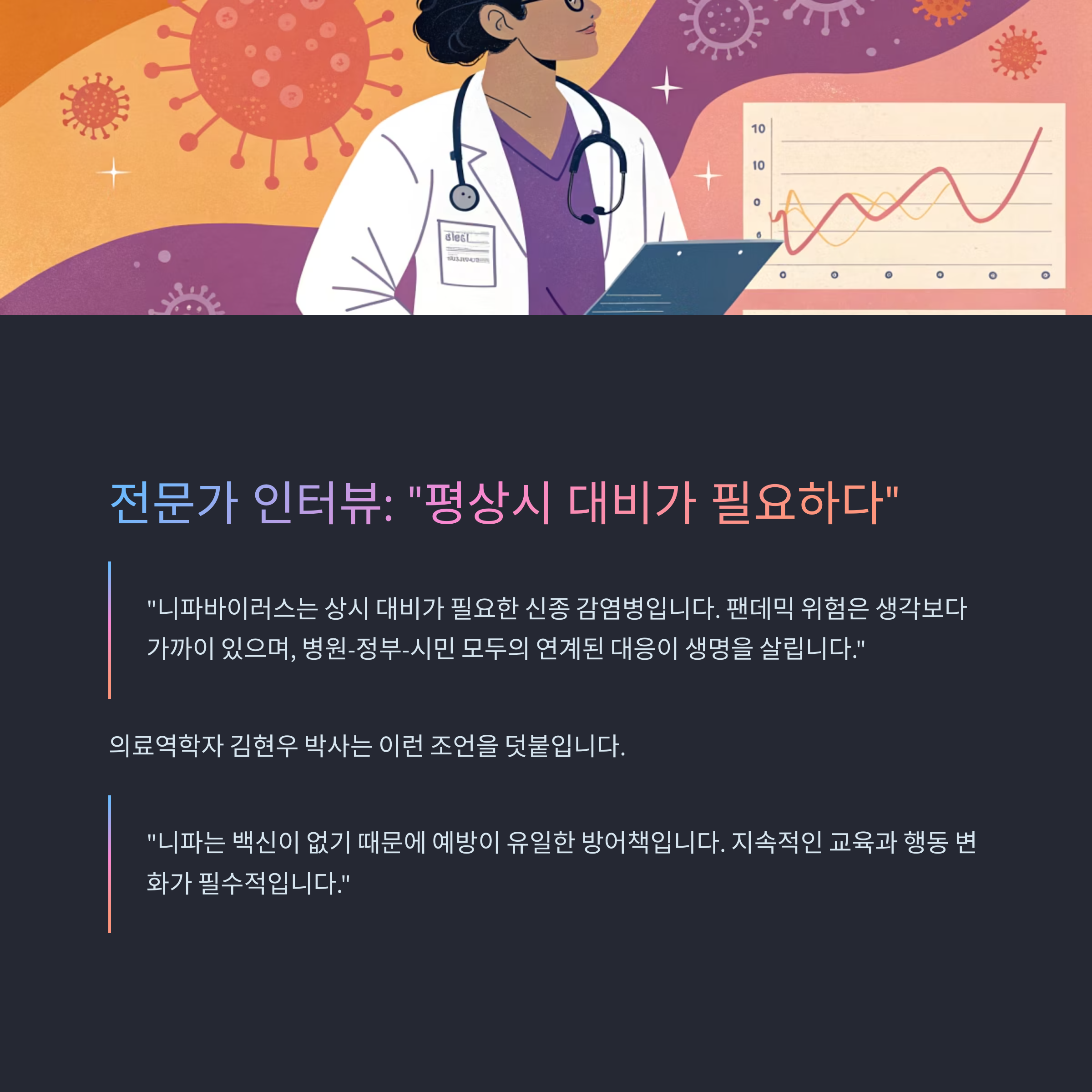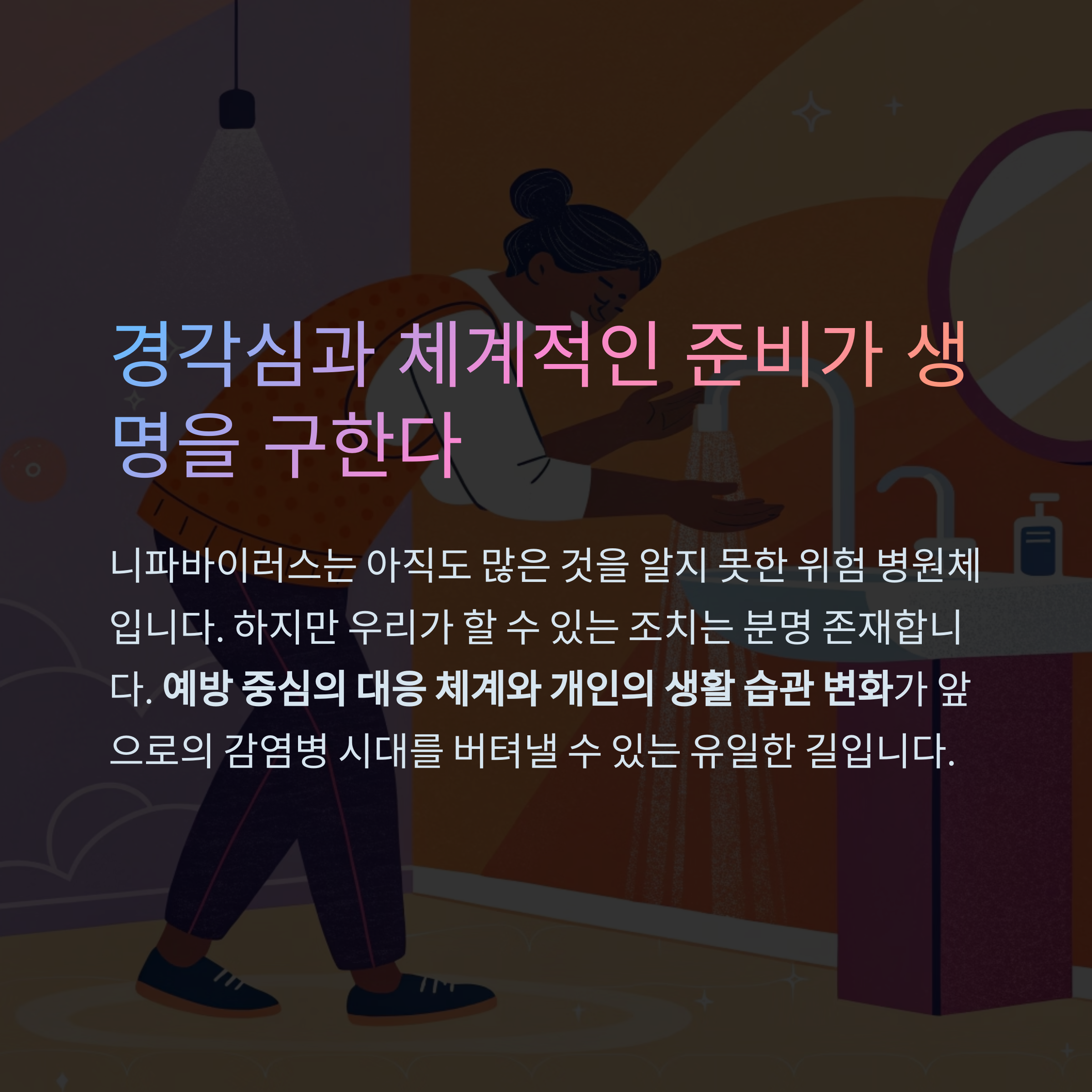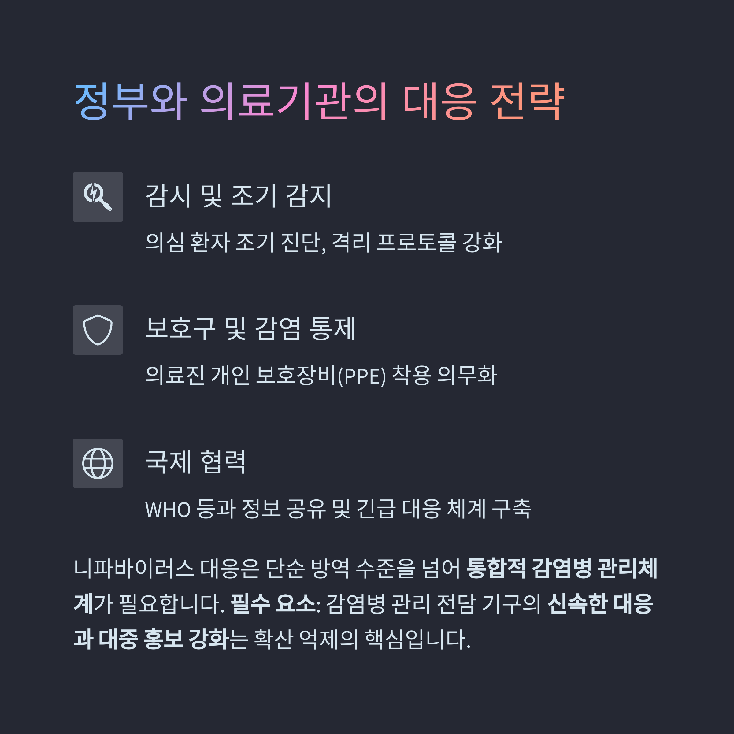 니파바이러스 대응은 단순 방역 수준을 넘어 통합적 감염병 관리체계가 필요합니다.