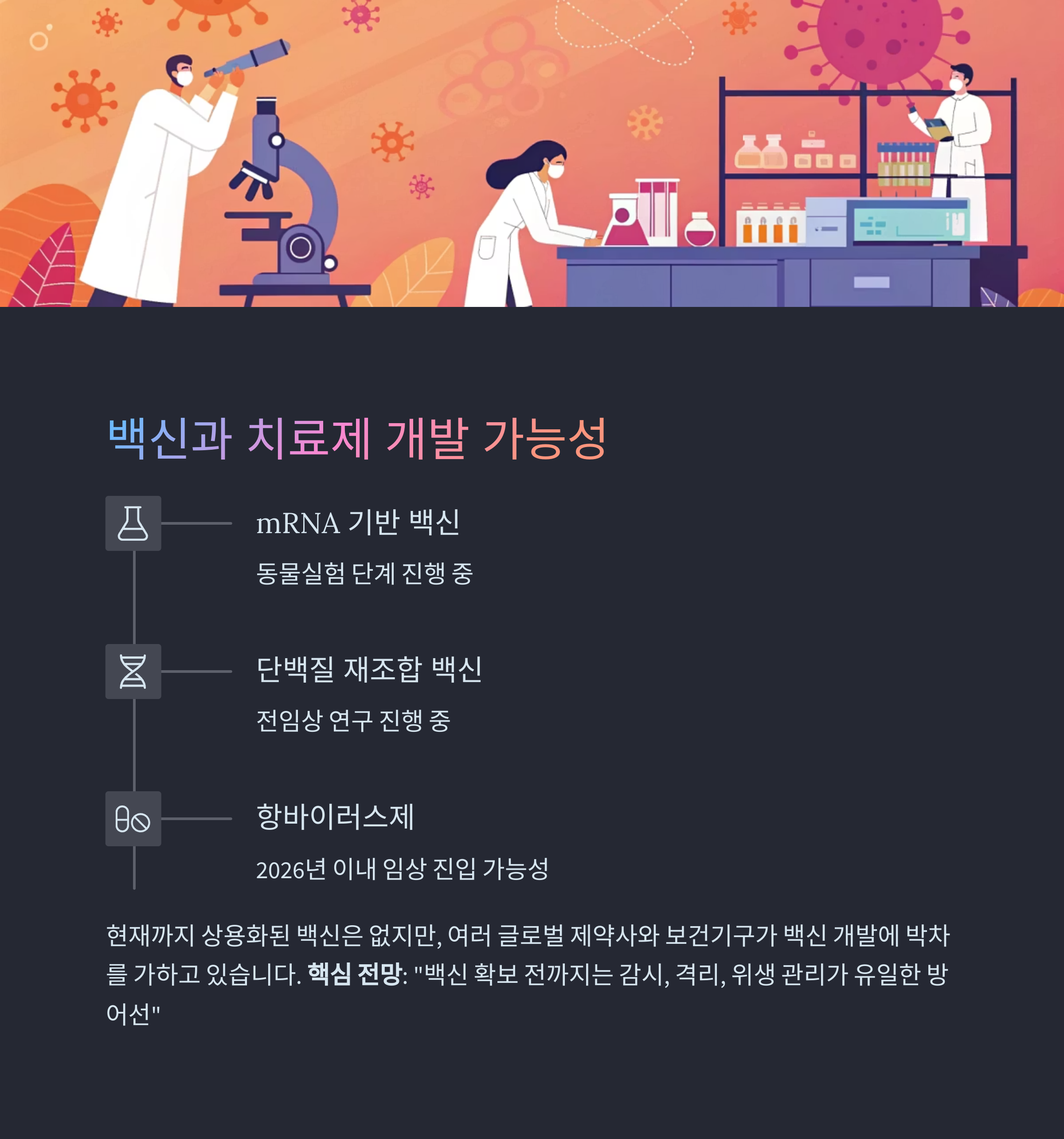 핵심 전망: "백신 확보 전까지는 감시, 격리, 위생 관리가 유일한 방어선"