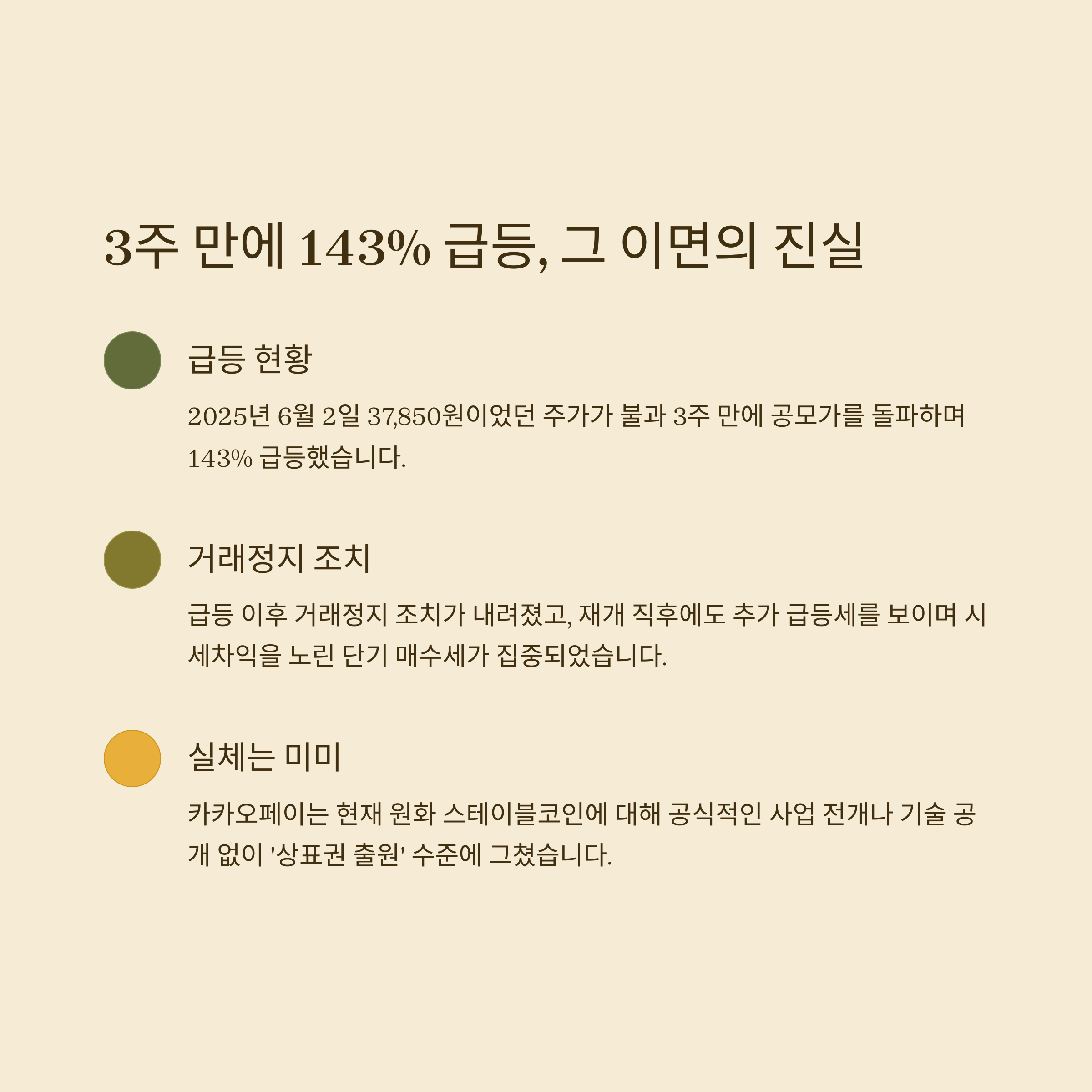 2025년 6월 2일, 카카오페이의 주가는 37,850원이었지만 불과 3주 만에
