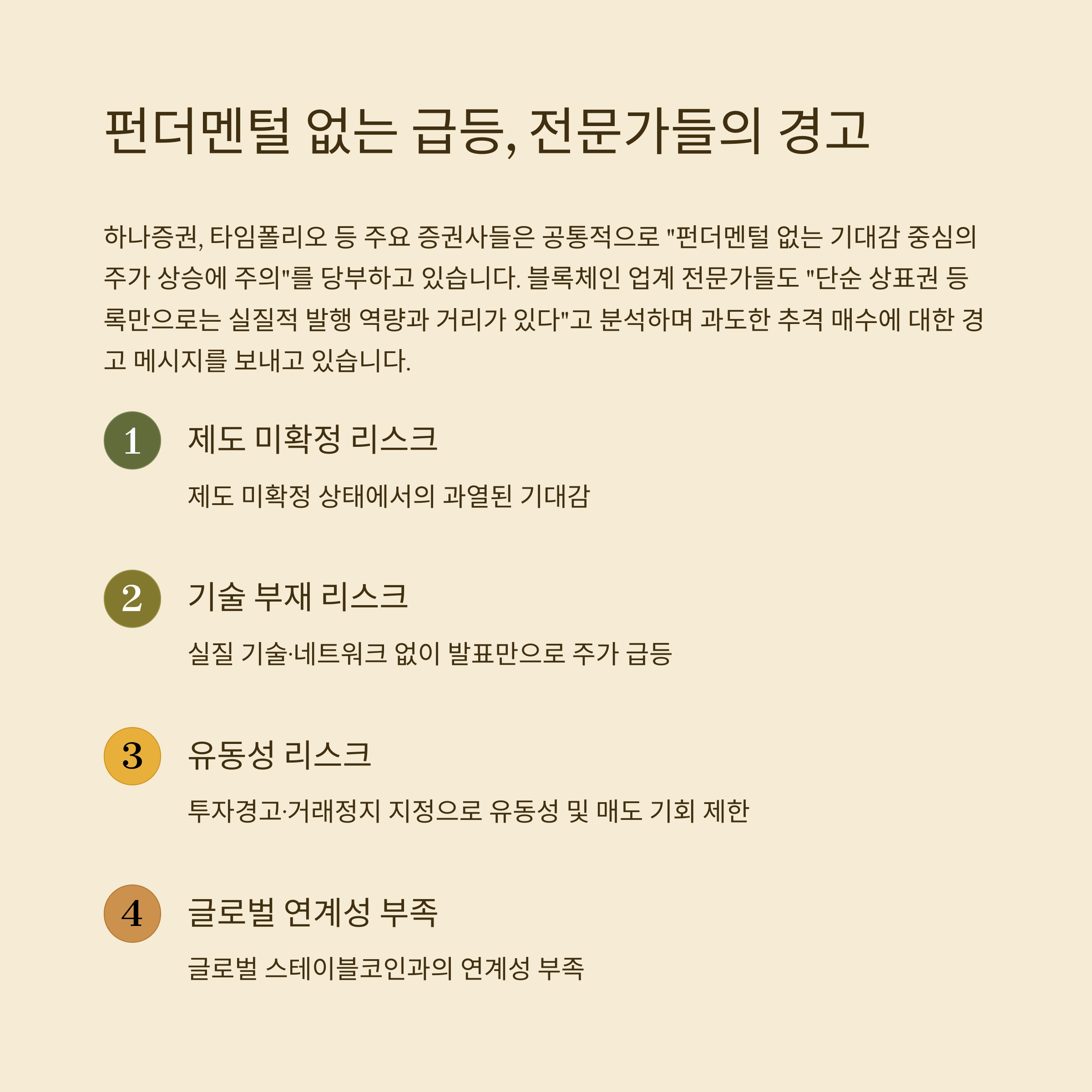 - 실질 기술·네트워크 없이 발표만으로 주가 급등