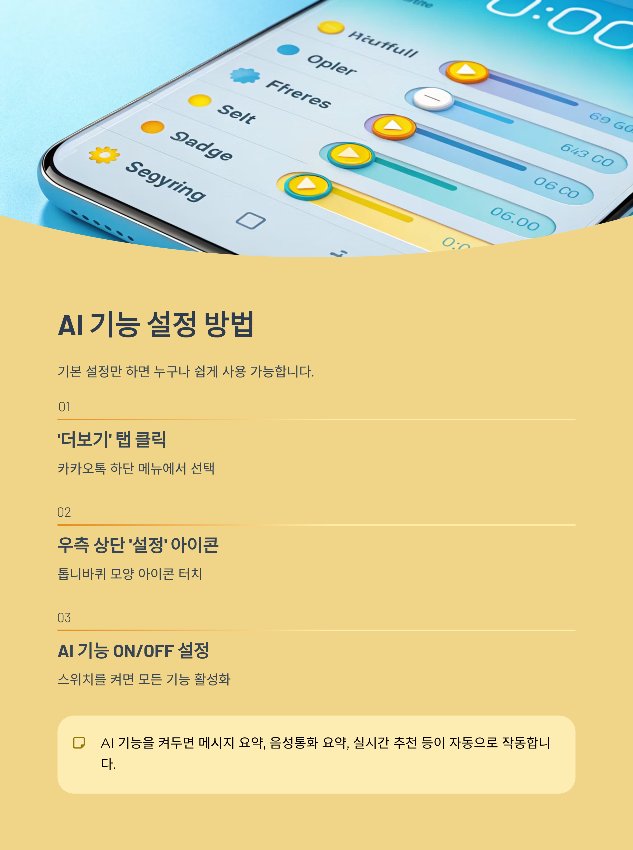 카카오톡 AI 기능은 기본 설정만 하면 누구나 쉽게 사용할 수 있어요.
