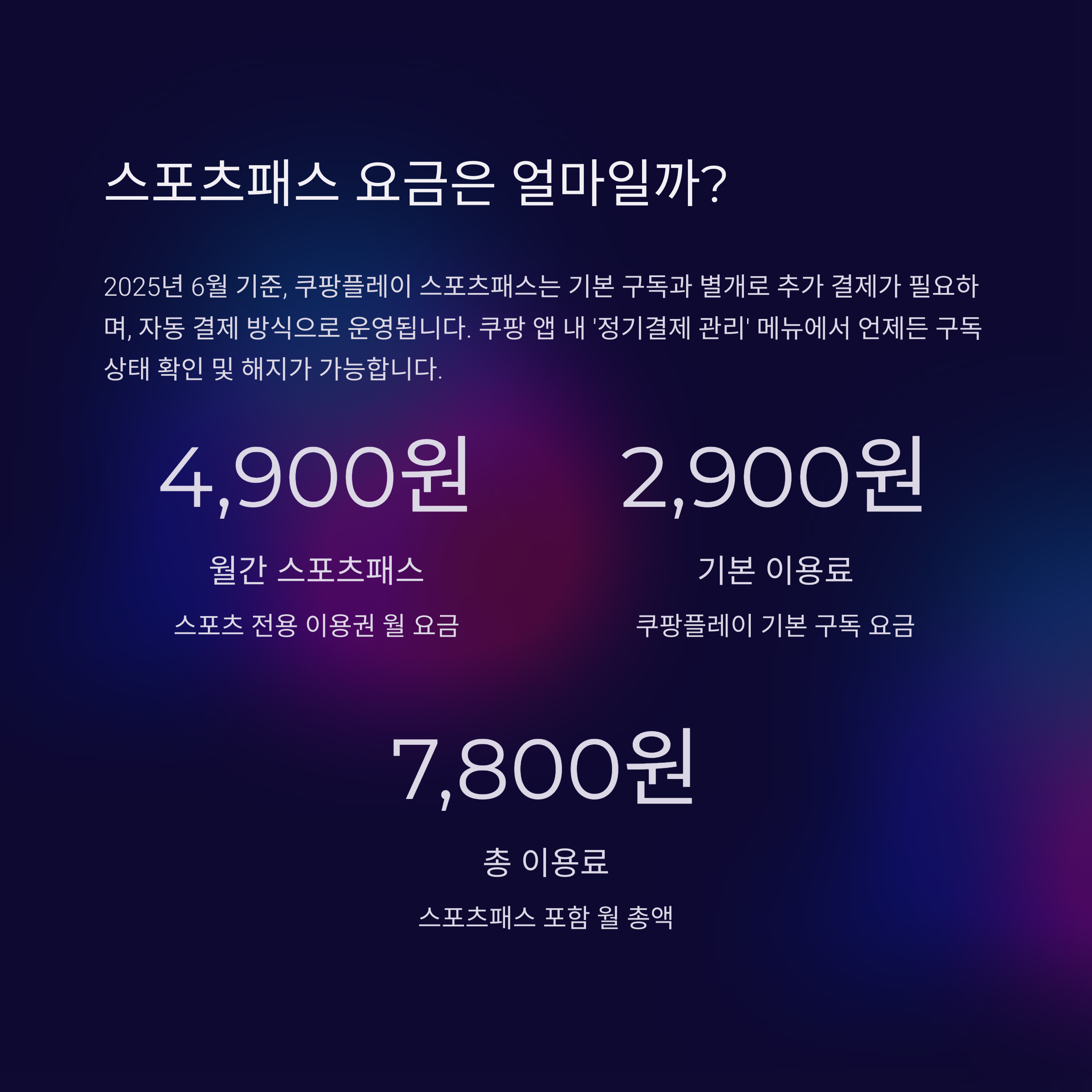 2025년 6월 기준, 쿠팡플레이 스포츠패스 요금은 아래와 같습니다.