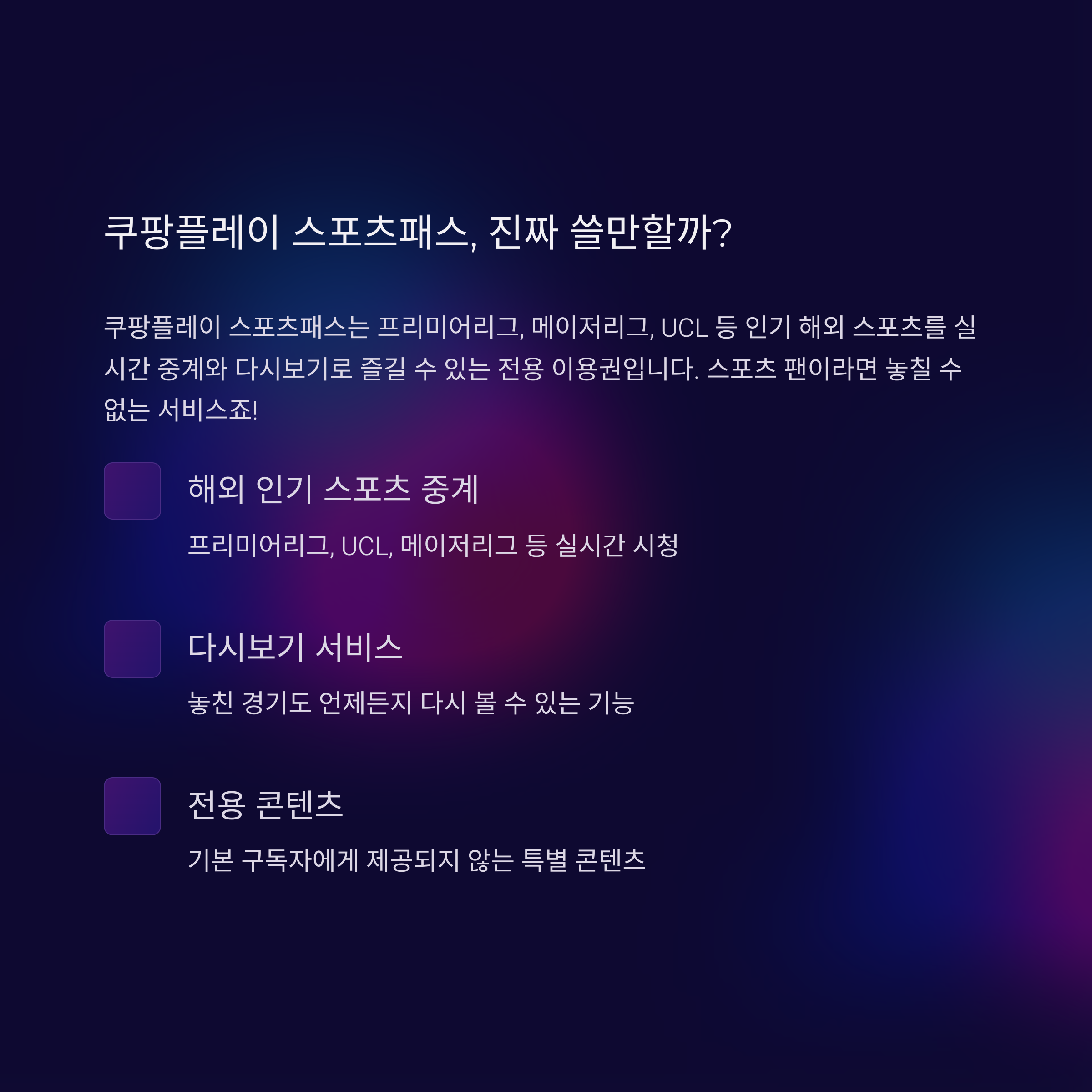 쿠팡플레이 스포츠패스, 진짜 쓸만할까? 어떤 경기까지 볼 수 있을까?