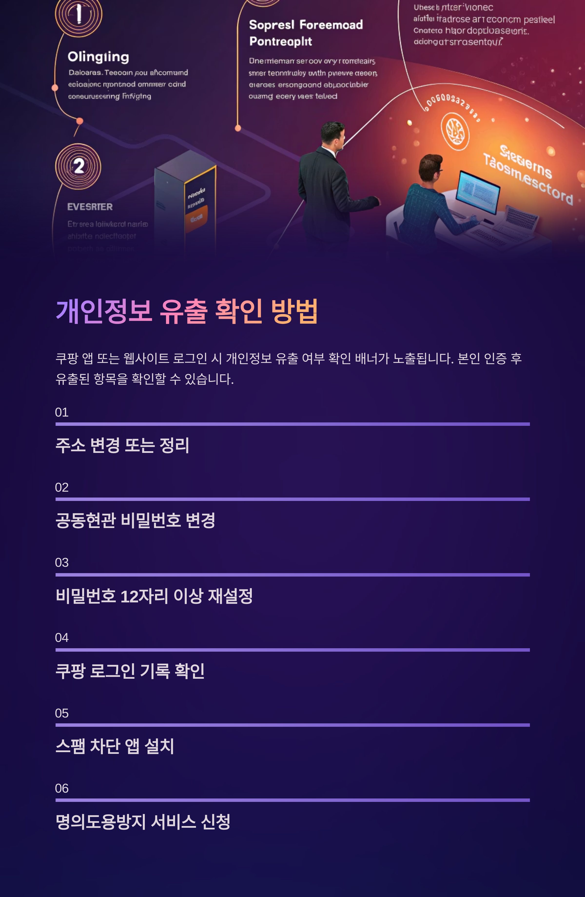 최근 쿠팡에서 발생한 대규모 개인정보 유출 사고로 인해 많은 이용자들이 불안감을 느끼고 있습니다. 본인의 정보가 유출됐는지 확인하는 방법과 2차 피해를 막기 위한 보안 조치, 보상 신청까지 필요한 정보를 총정리해드립니다. 지금 바로 확인하고 대응하세요.