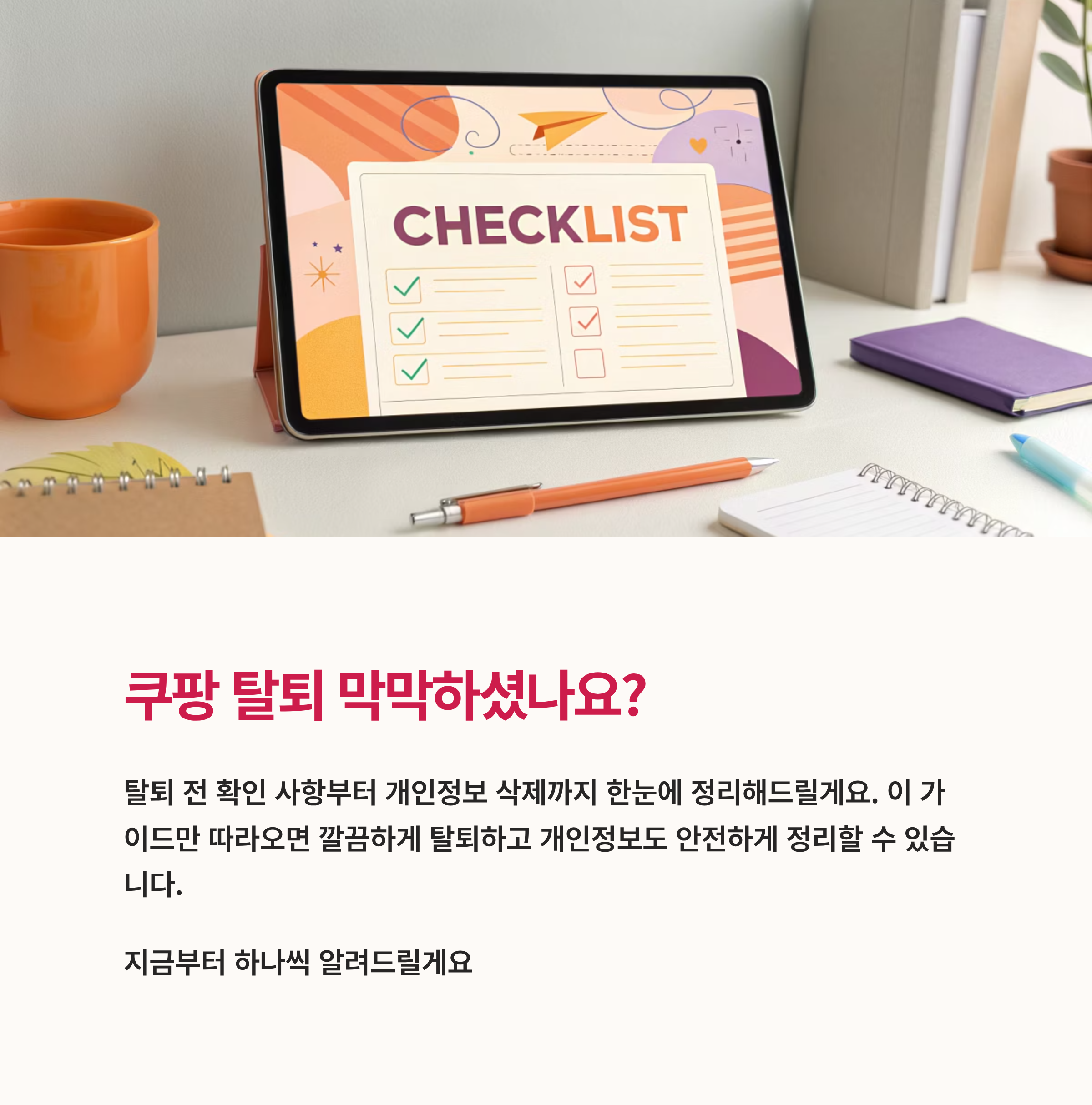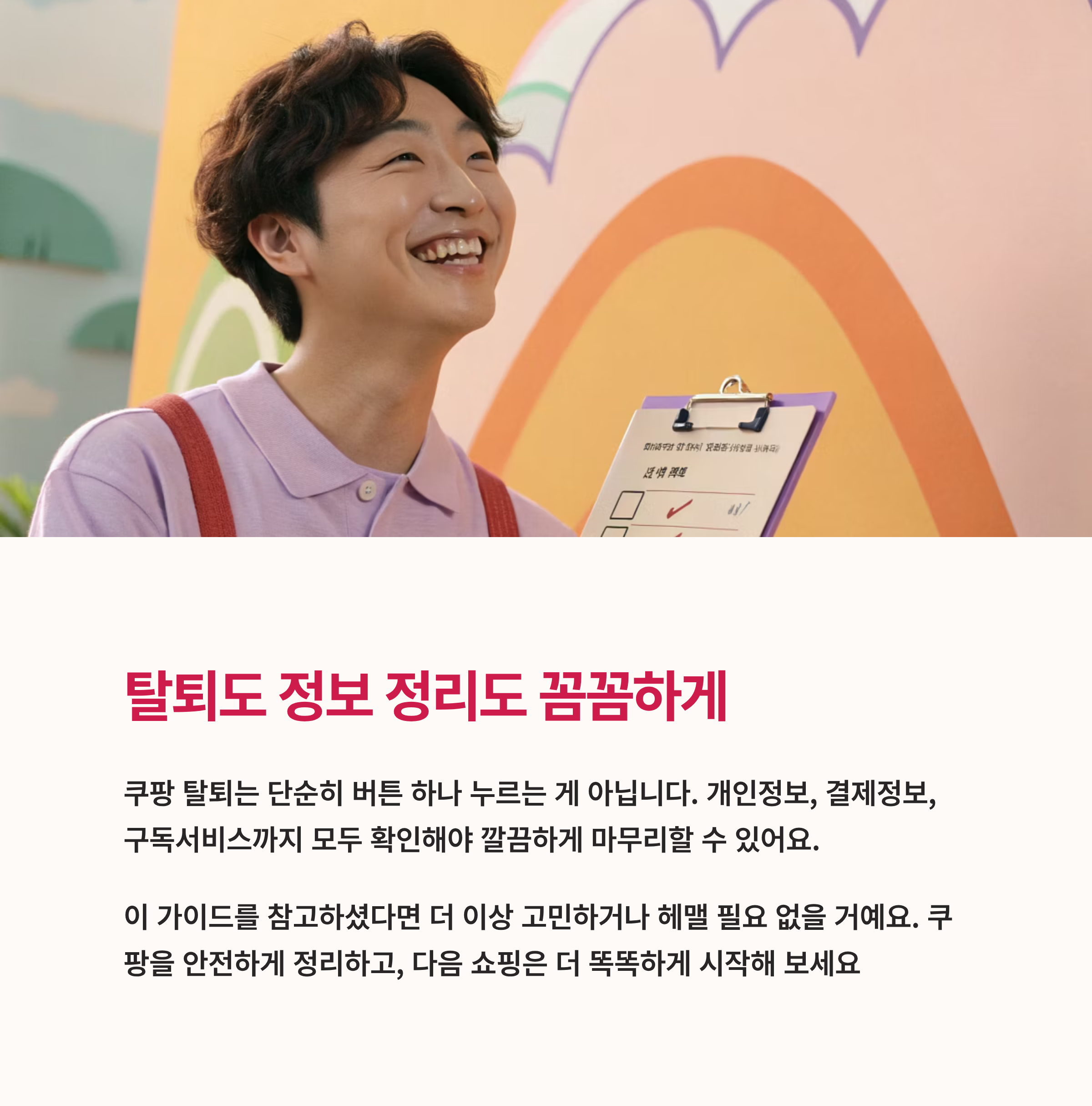 이 가이드를 참고하셨다면 더 이상 고민하거나 헤맬 필요 없을 거예요. 쿠팡을 안전하게 정리하고, 다음 쇼핑은 더 똑똑하게 시작해 보세요.