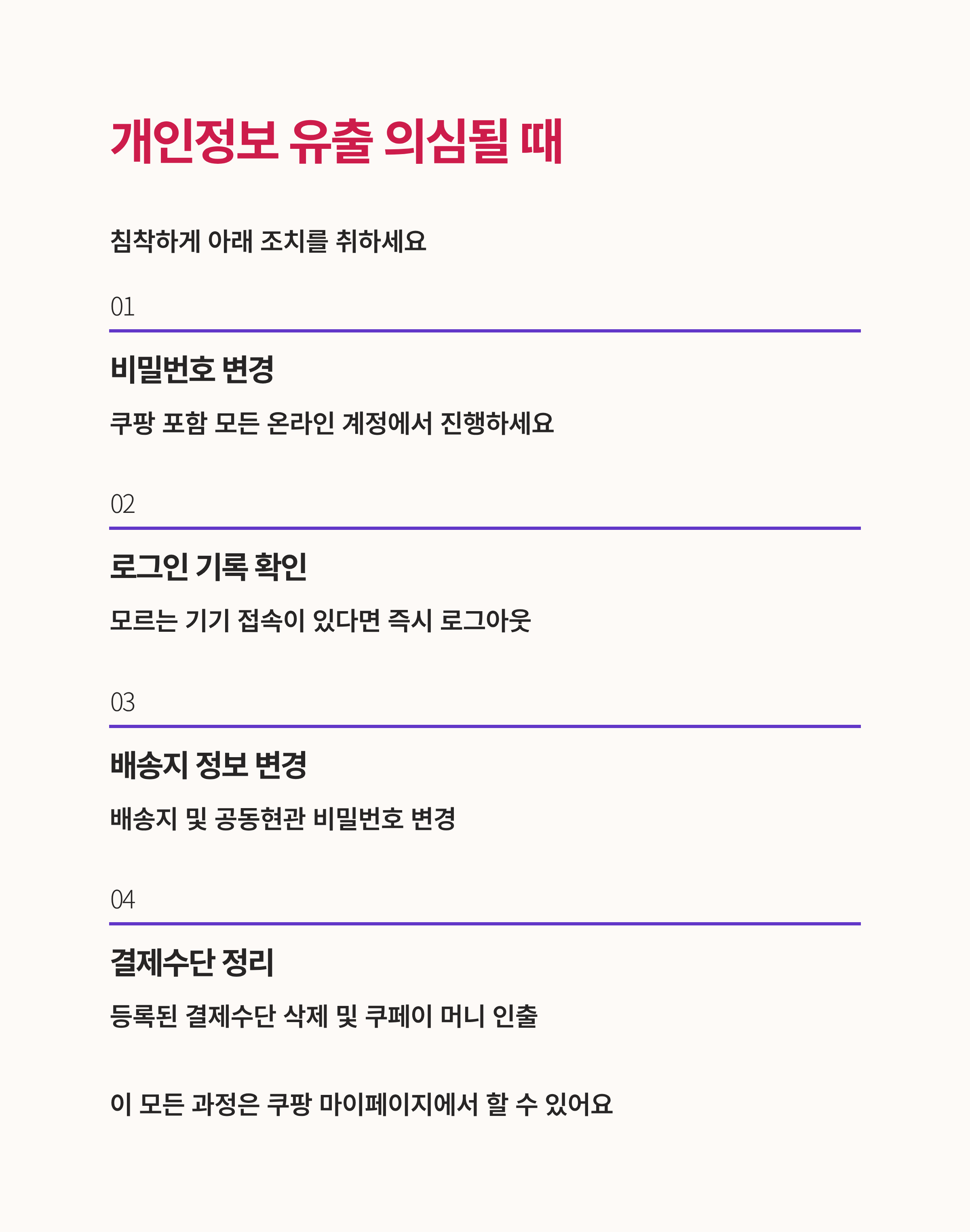 - 비밀번호 변경은 쿠팡 포함 모든 온라인 계정에서 진행하세요.