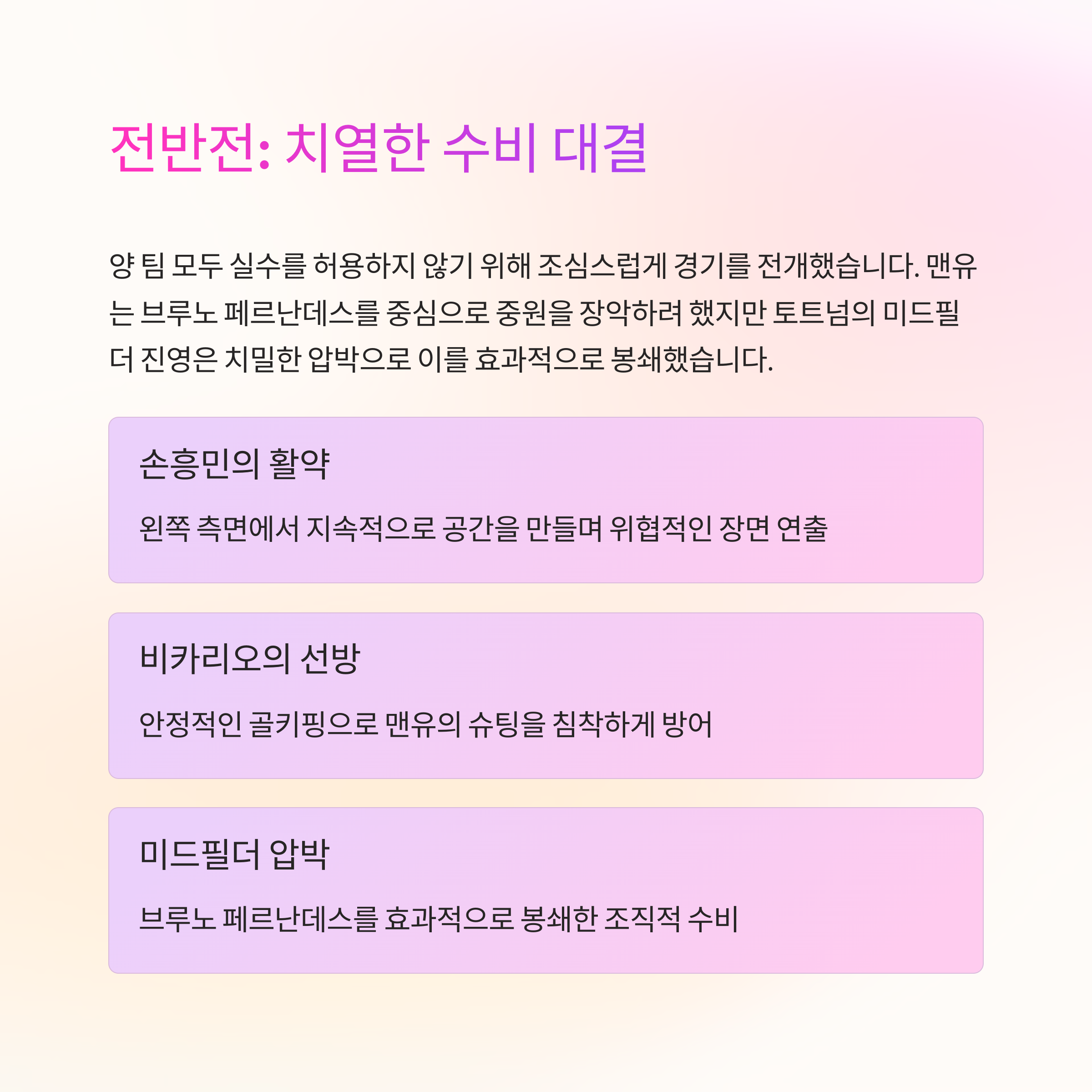 | 전반 12분 | 맨유 첫 슈팅 (브루노) |