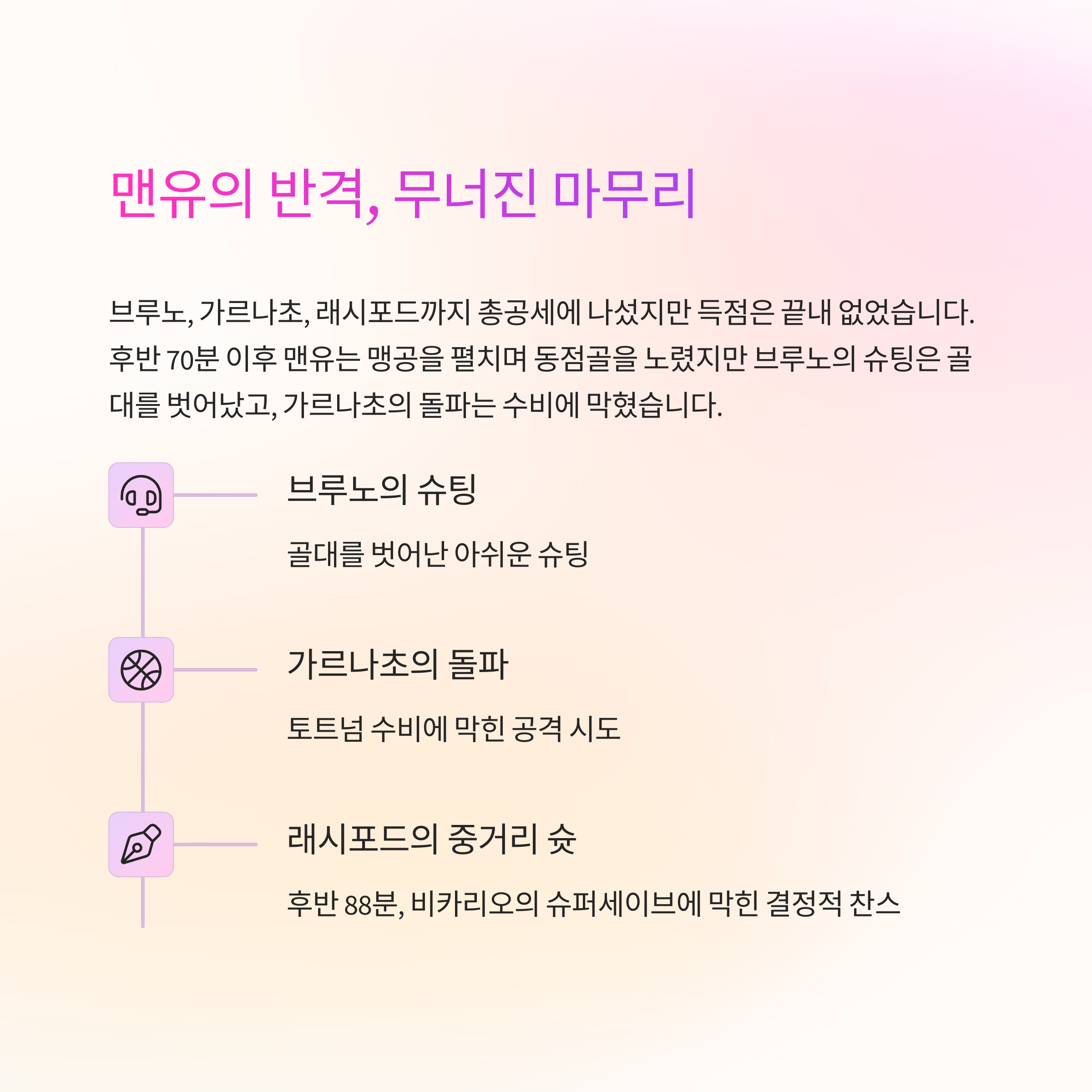 브루노, 가르나초, 래시포드까지 총공세에 나섰지만 득점은 끝내 없었습니다
