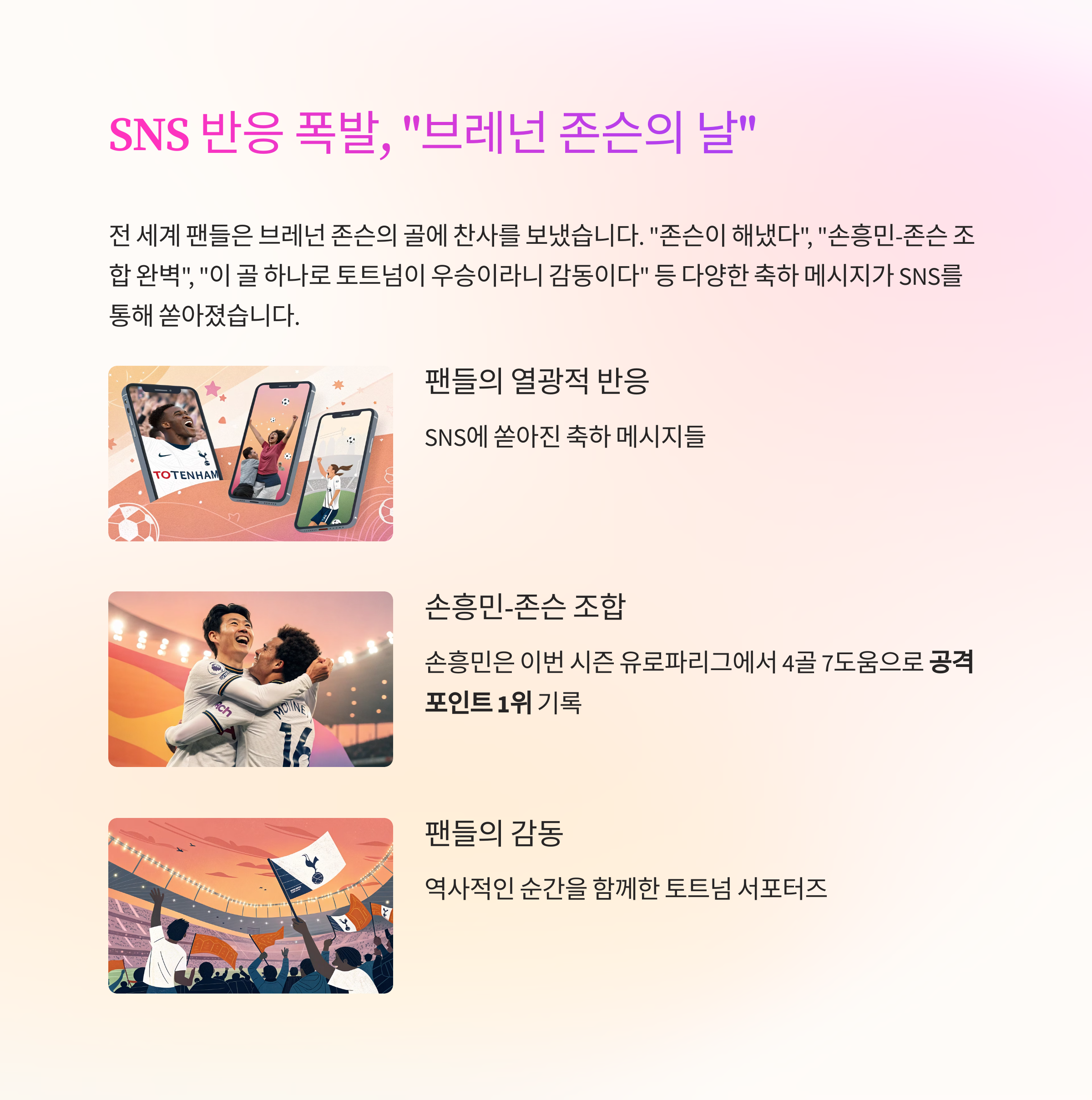 "손흥민-존슨 조합 완벽",