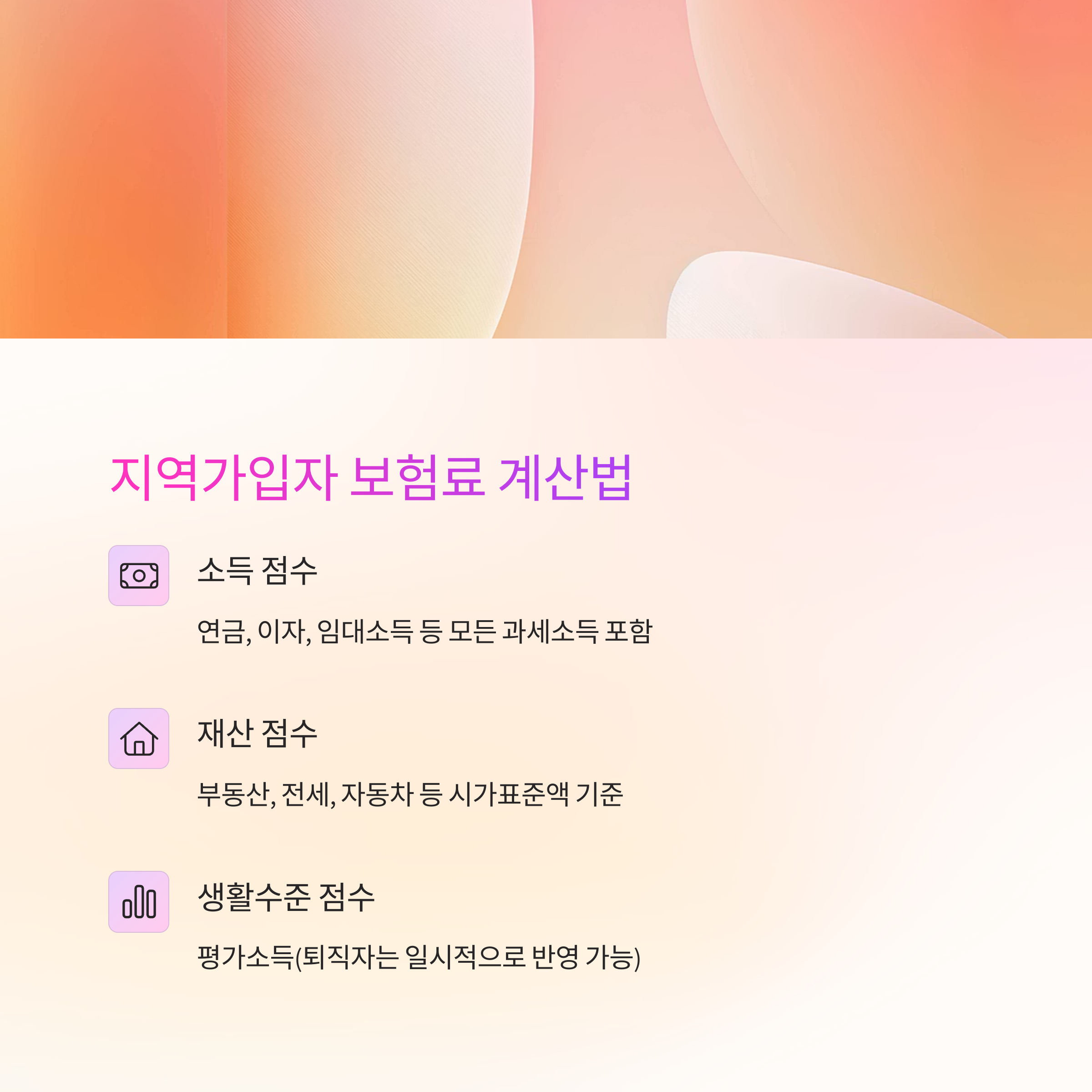 이 세 항목을 점수로 환산해 일정 금액을 곱하면 월 보험료가 결정됩니다.